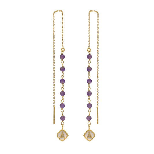 Amethyst and Buddha threader earrings in gold plated 925 sterling silver