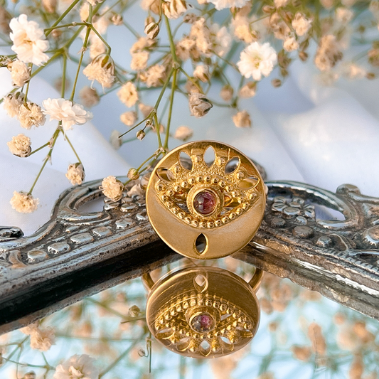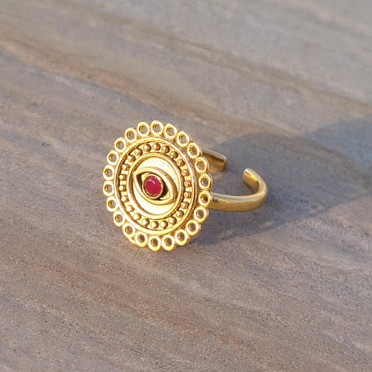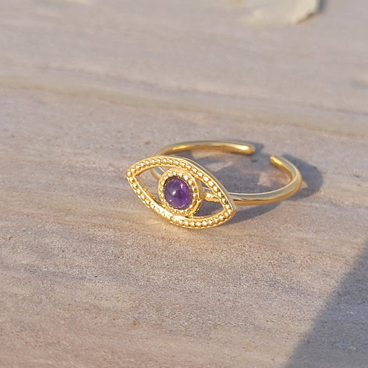 Adjustable Evil Eye ring with Amethyst marquise gemstone