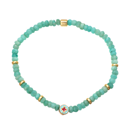 Amazonite star charm stretch bracelet with blue enamel and in gold plated 925 sterling silver