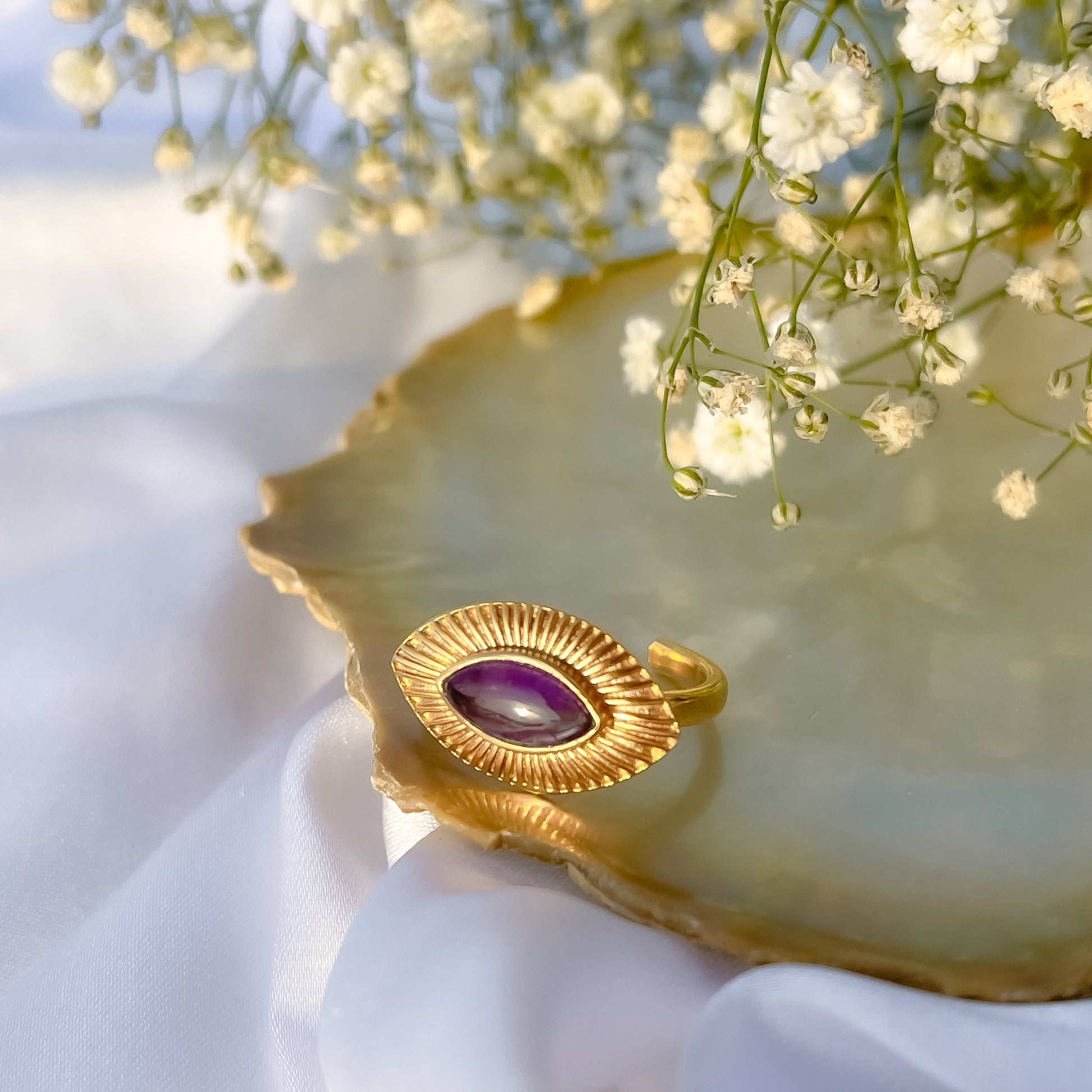 Adjustable Evil Eye ring with Amethyst marquise gemstone
