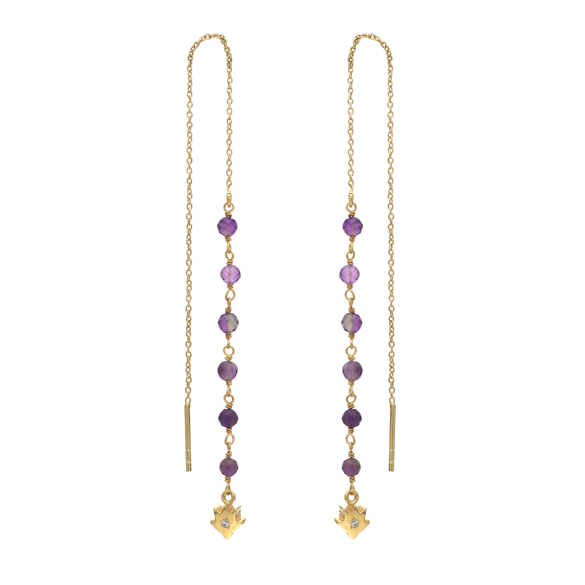 Amethyst and lotus threader earrings in gold plated 925 sterling silver