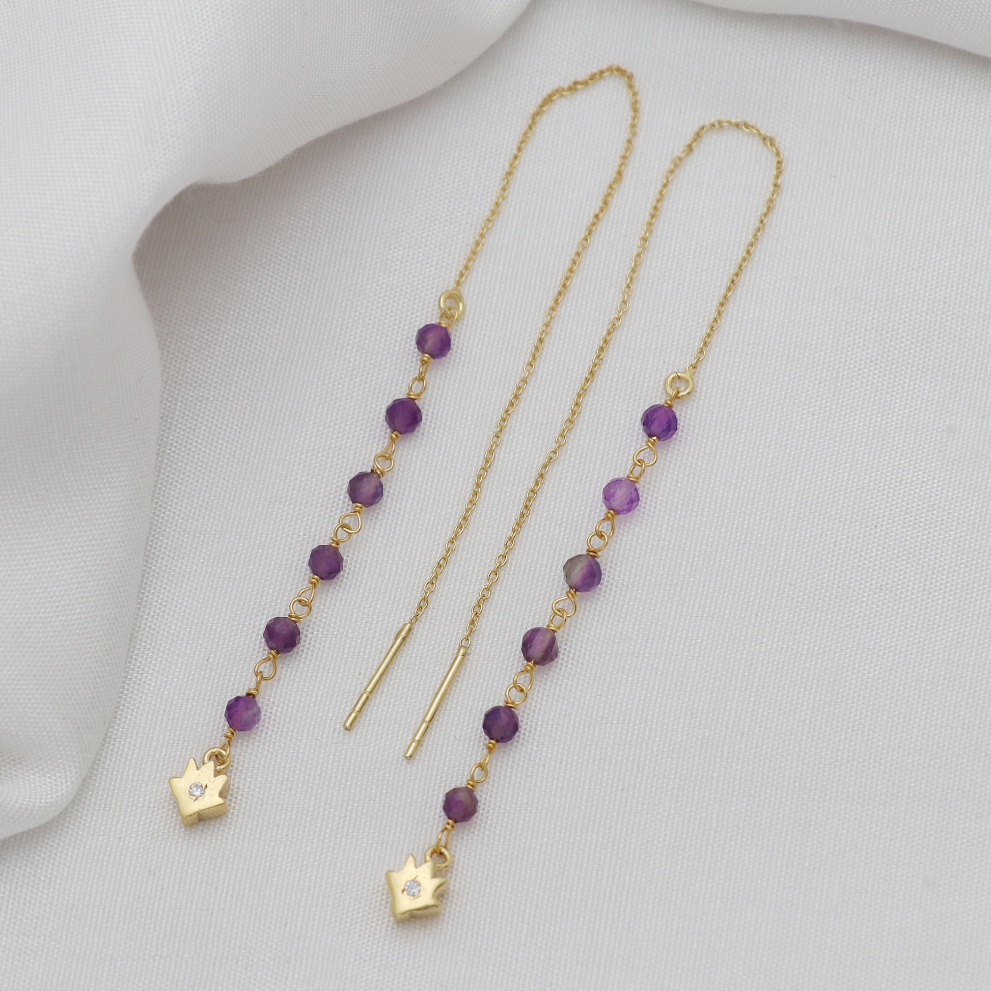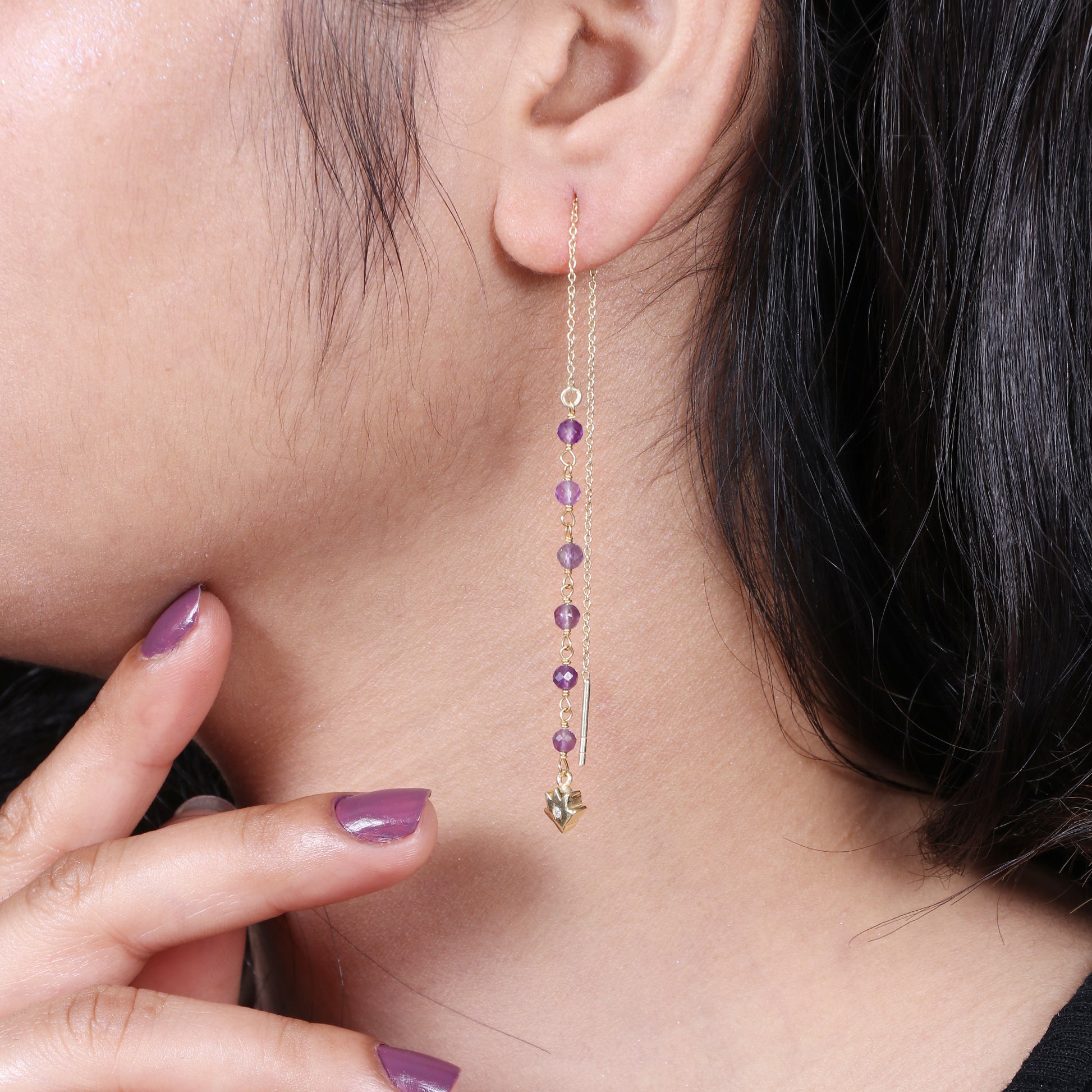 Add a touch of whimsy to your look with these charming Amethyst and Lotus Threader Earrings. Made with 925 sterling silver, each earring is carefully plated in gold for a luxurious finish. Embodying the healing properties of amethyst and the purity of the lotus flower, these earrings are both beautiful and meaningful.