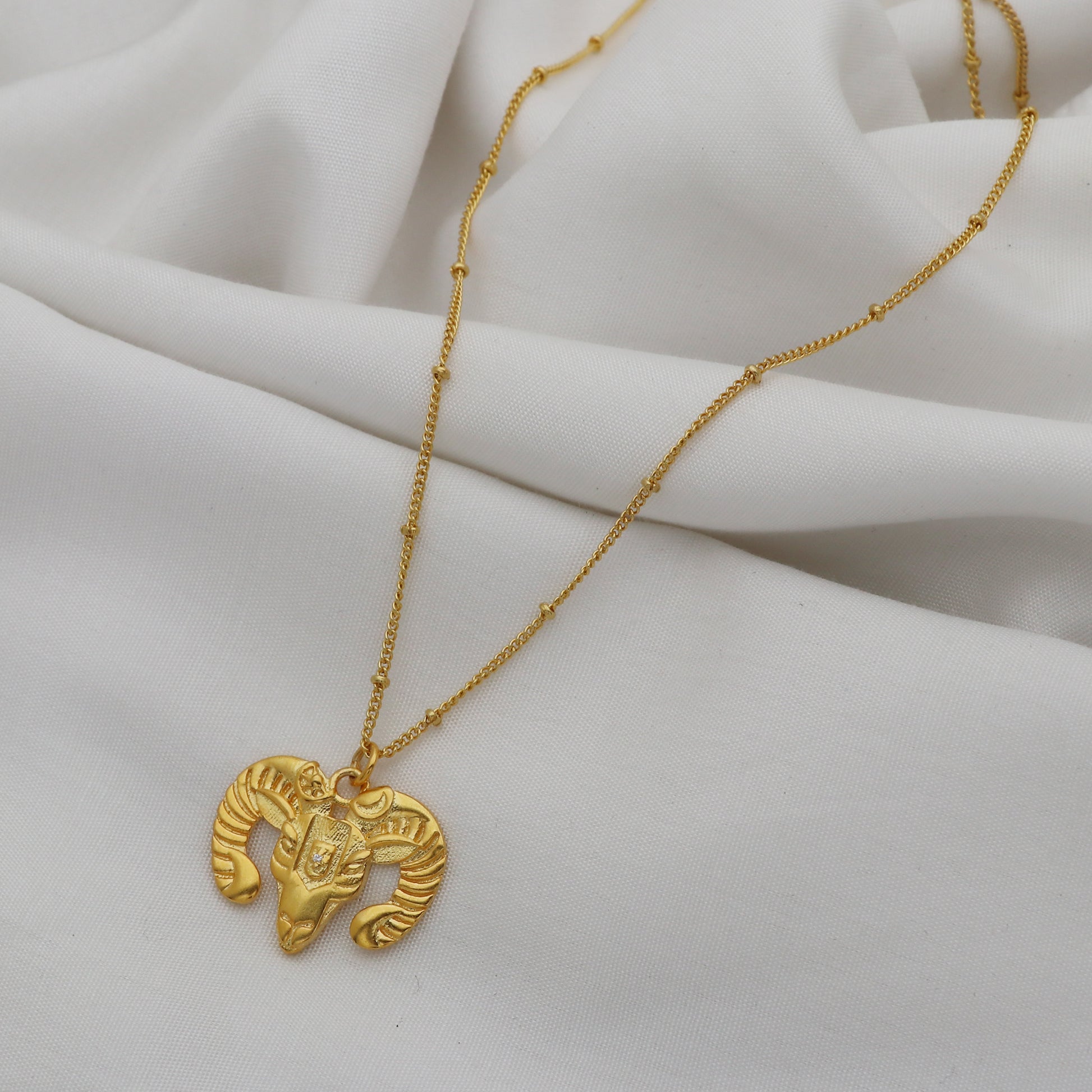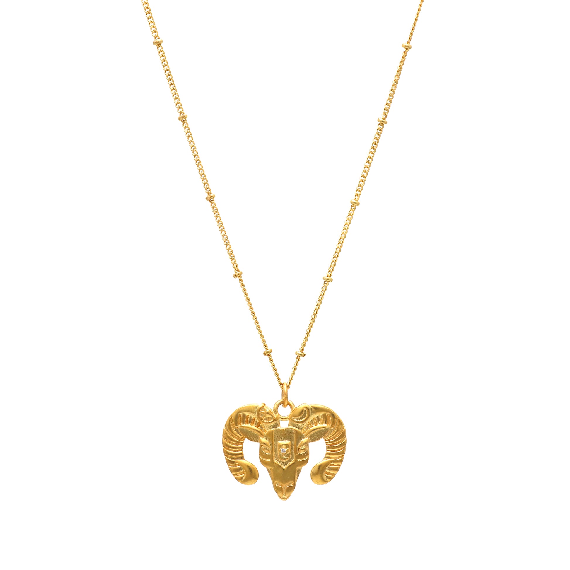 Aries Zodiac Sign chain necklace with Ram (Male Sheep) Symbol charm and Zircon Stones