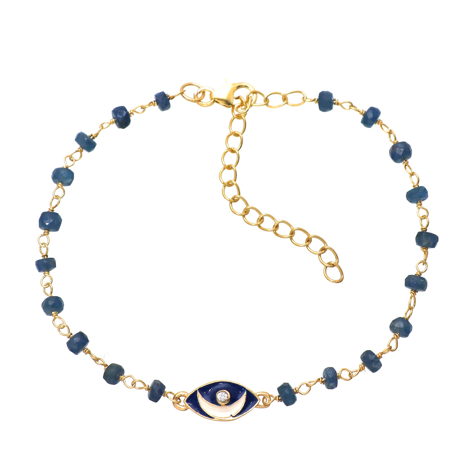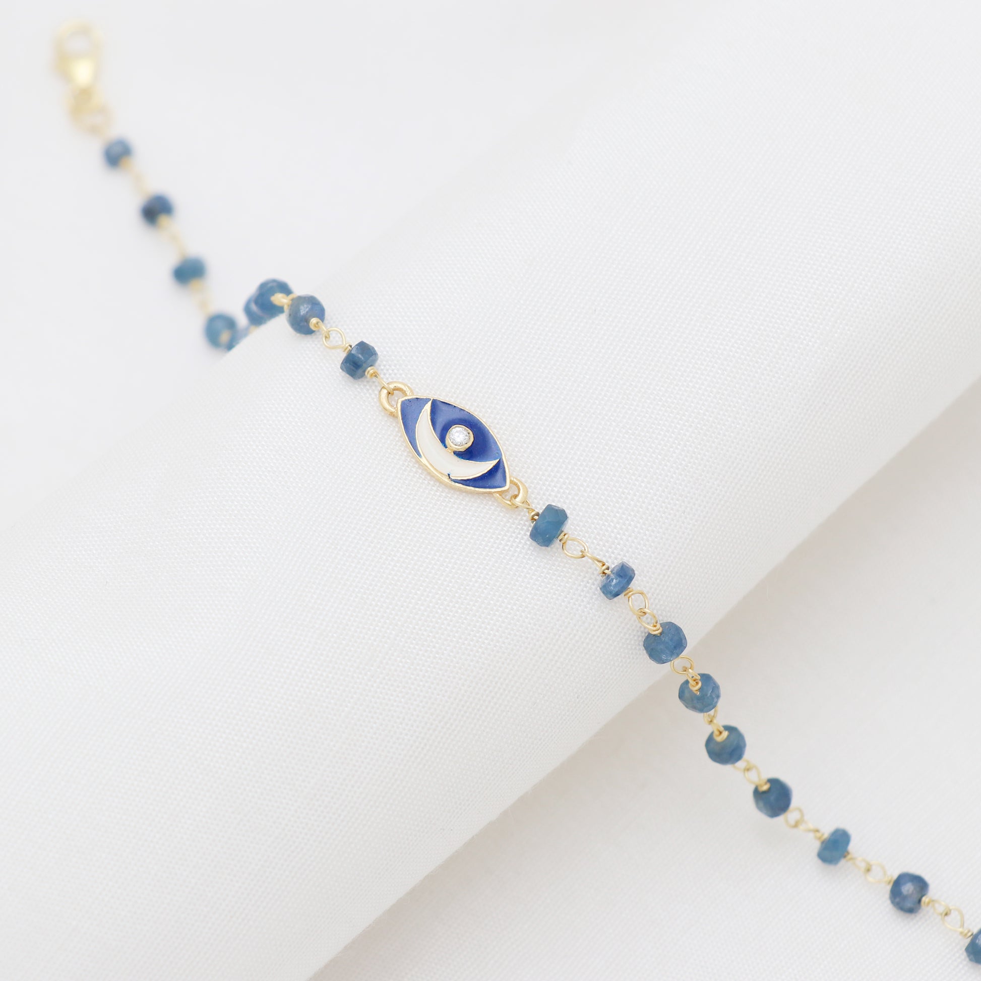 Blue Sapphire moon charm rosary bracelet with blue enamel and zircon stone in gold plated 925 sterling silver