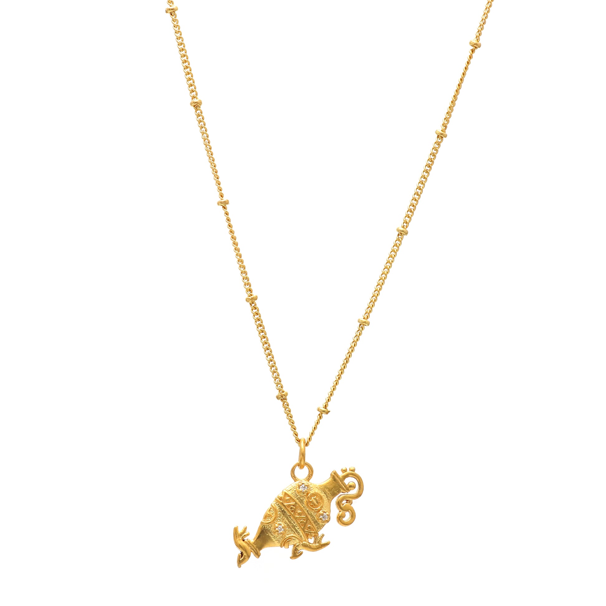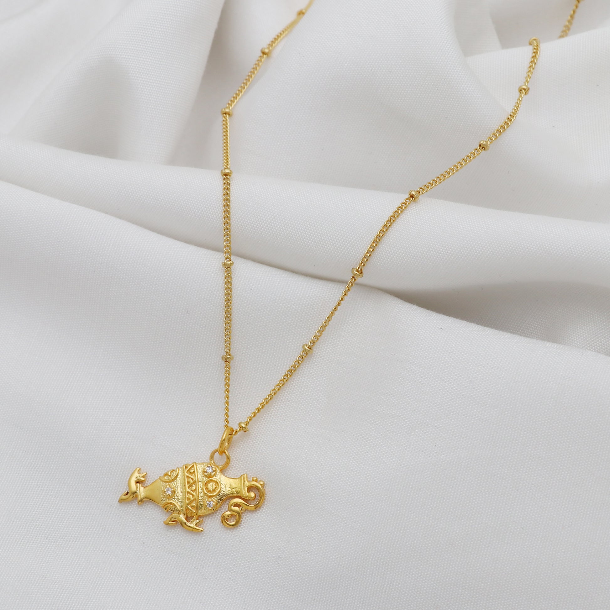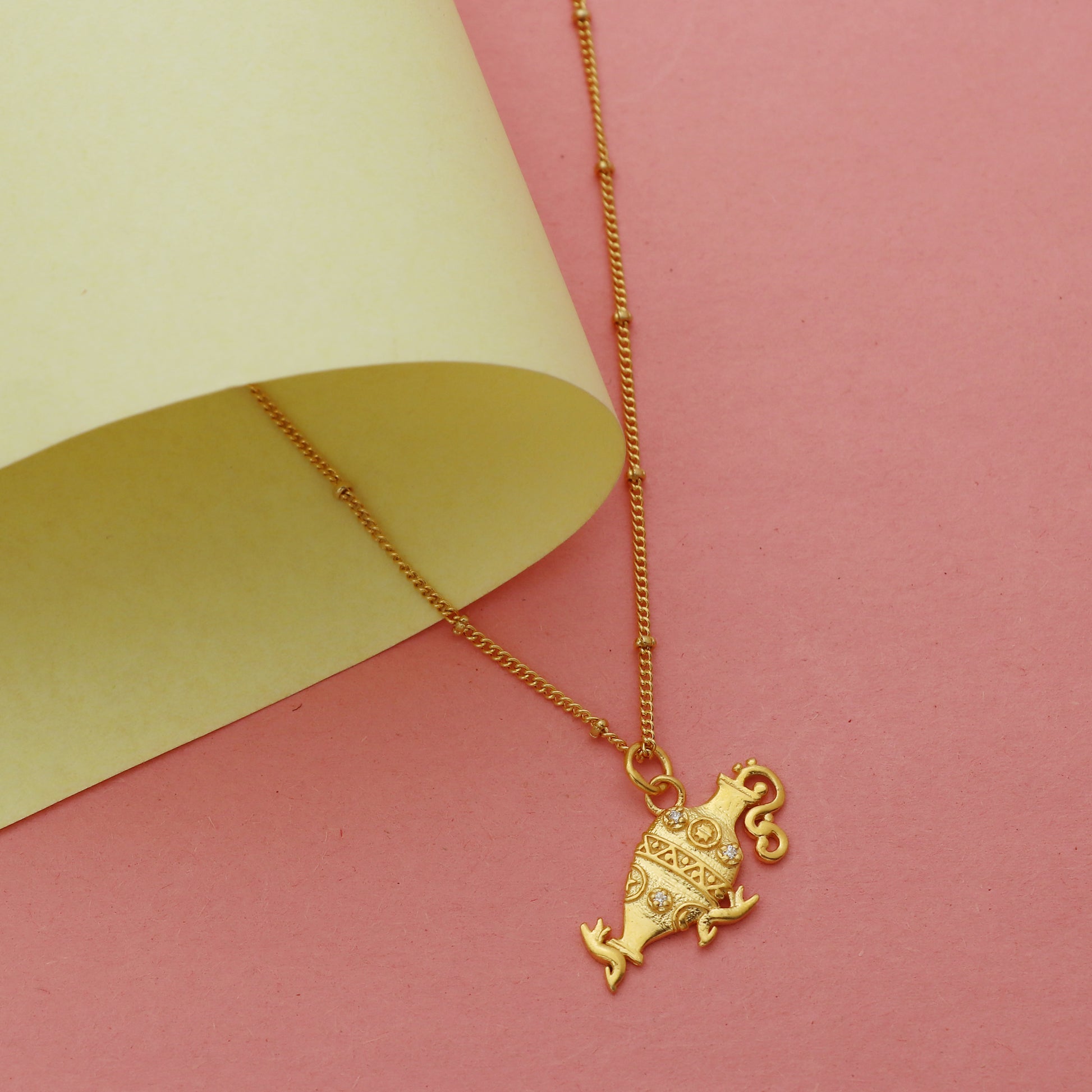 Aquarius Zodiac Sign chain necklace with Water Bearer Symbol charm and Zircon Stones