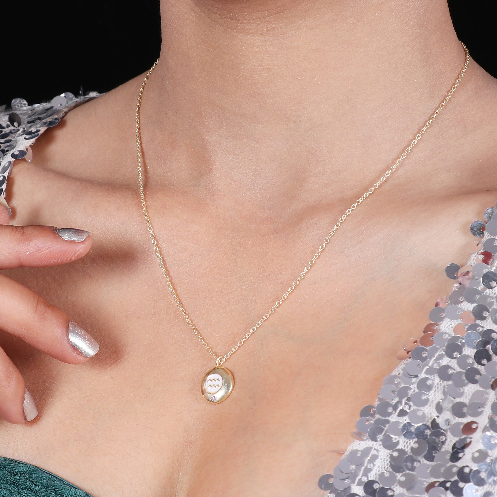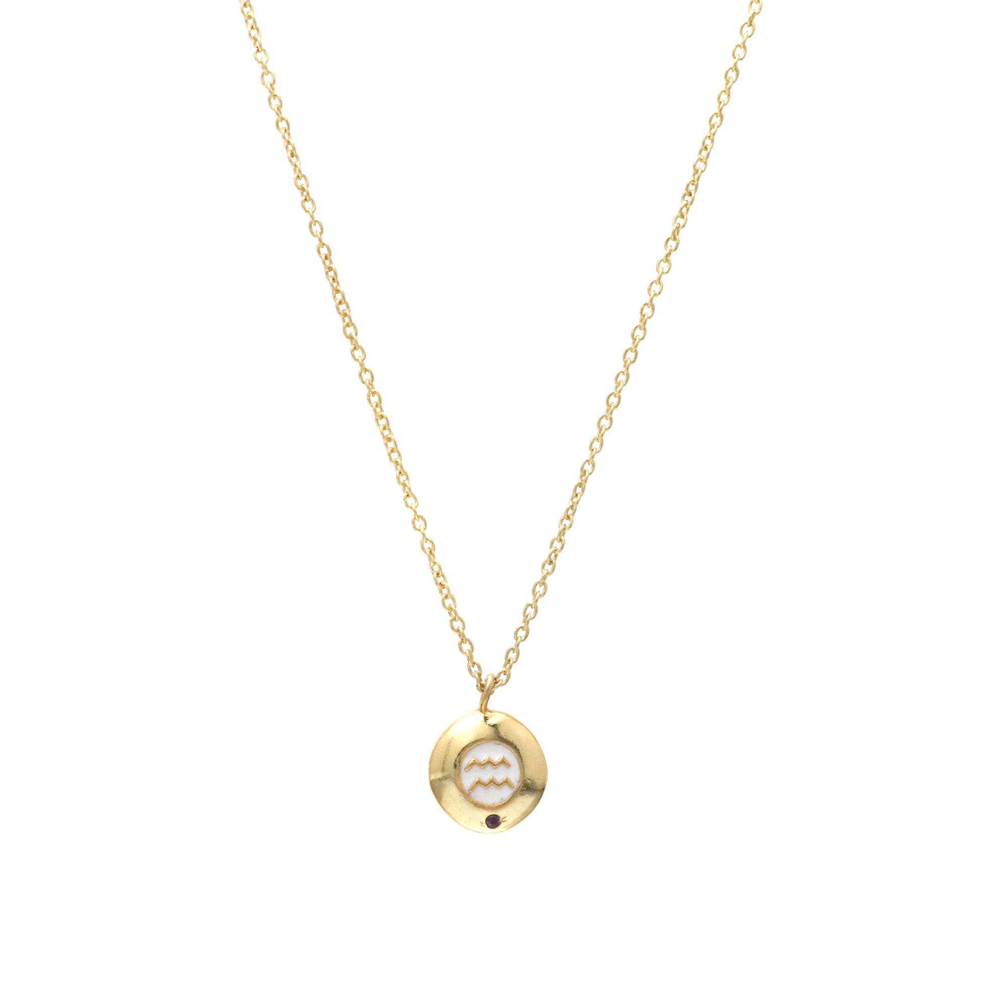 Aquarius Zodiac Sign chain necklace with white enamel and Amethyst birthstone in 22k gold plated 925 sterling silver