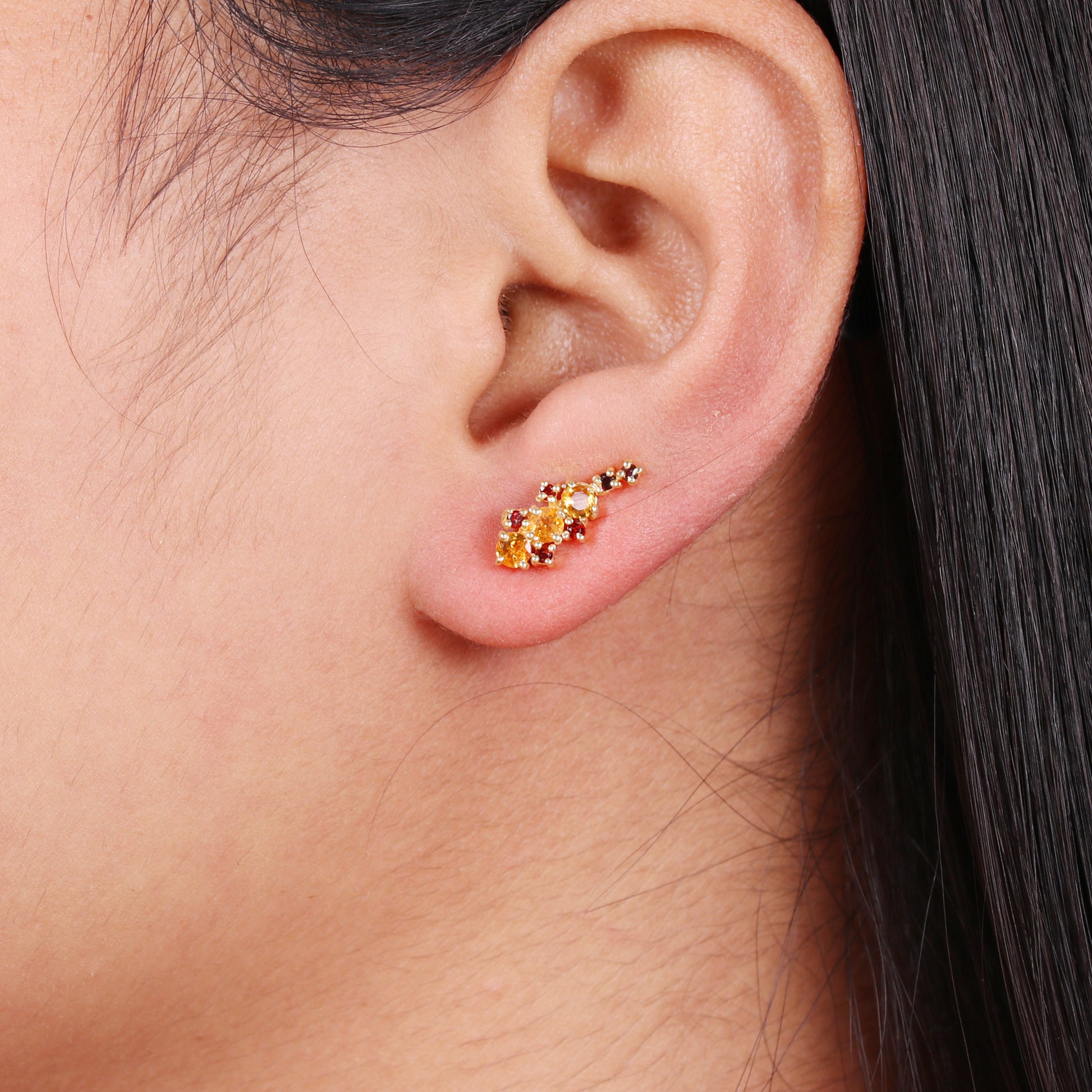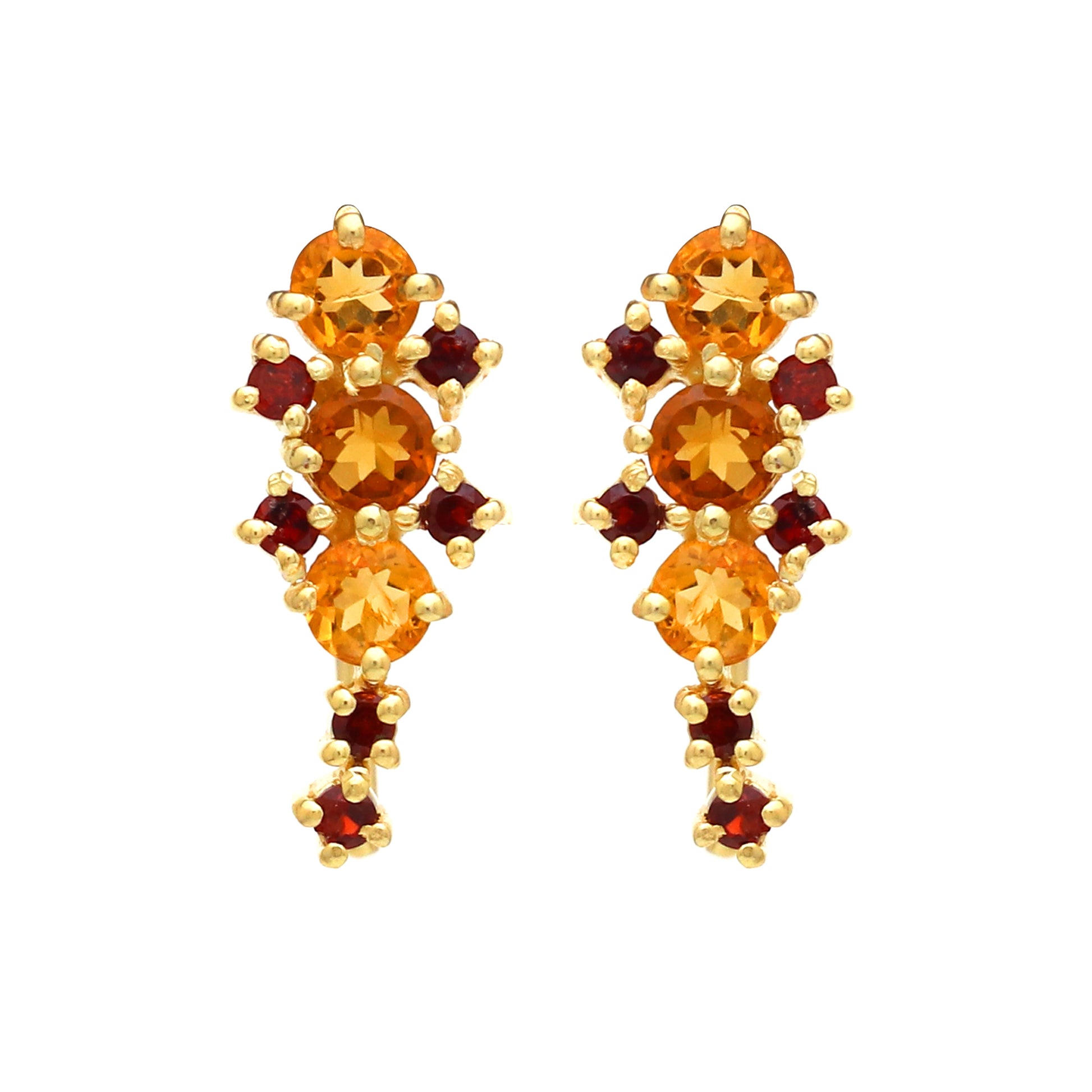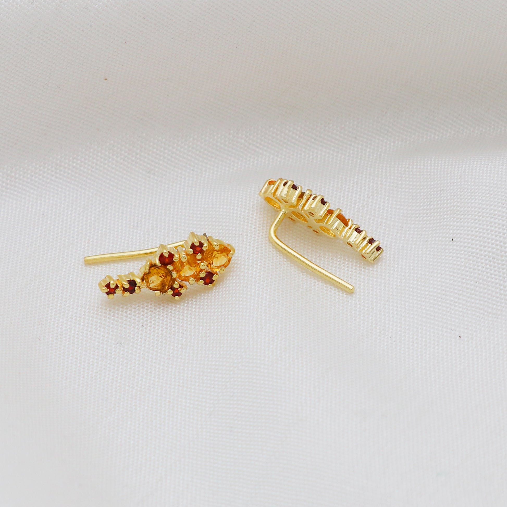 Citrine and garnet gemstone climber earring in 925 gold plated sterling silver