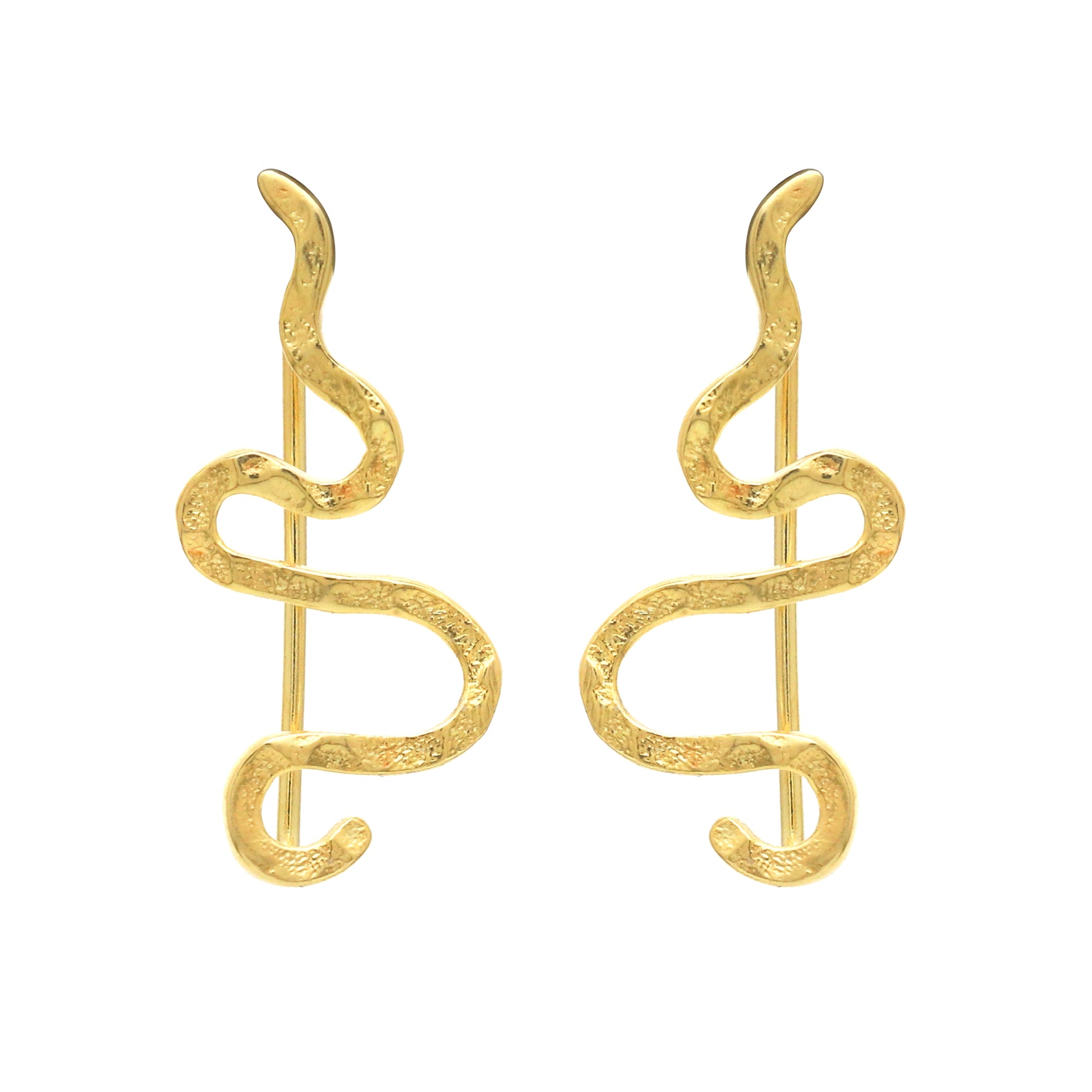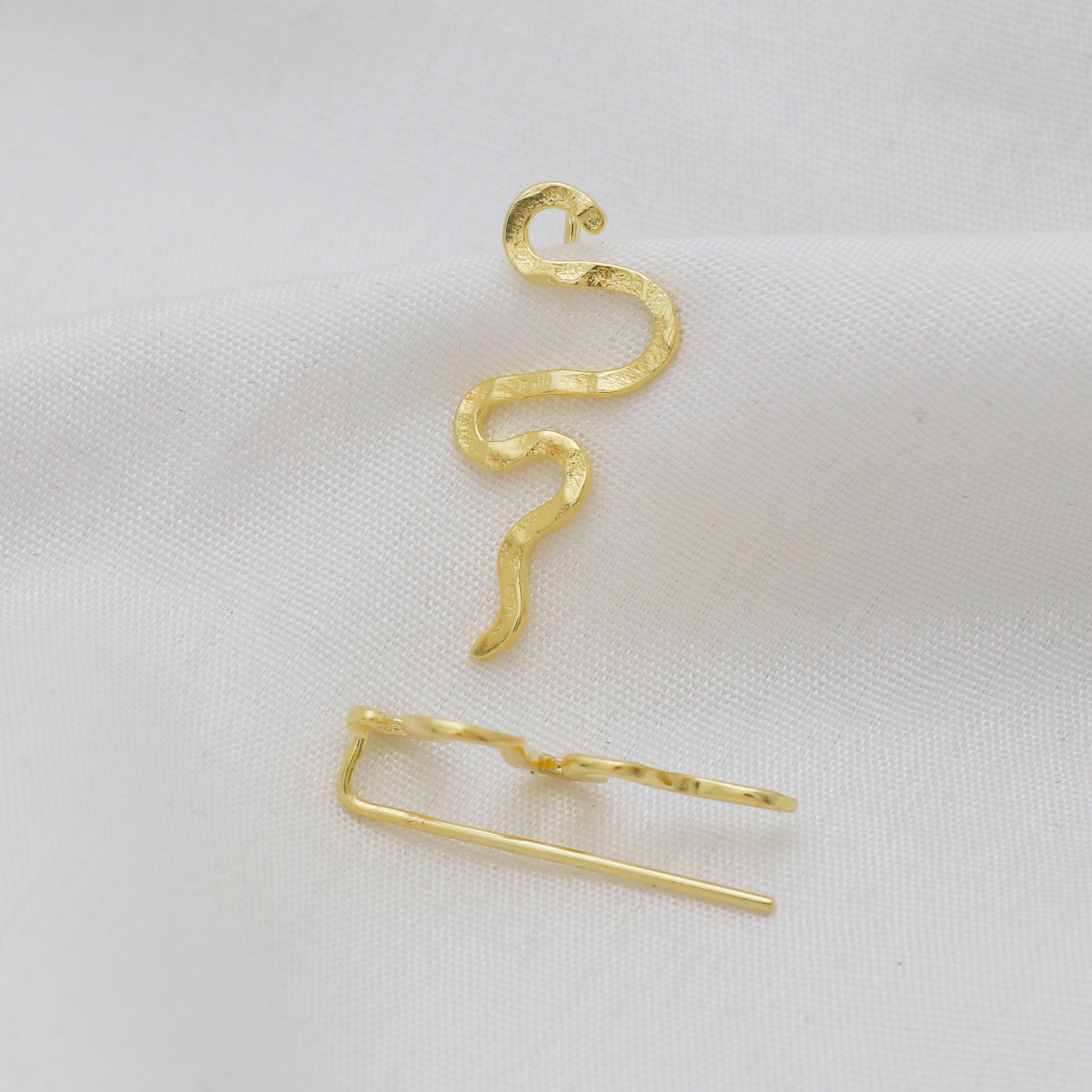 Textured Snake climber earrings in gold plated Brass/925 Sterling Silver