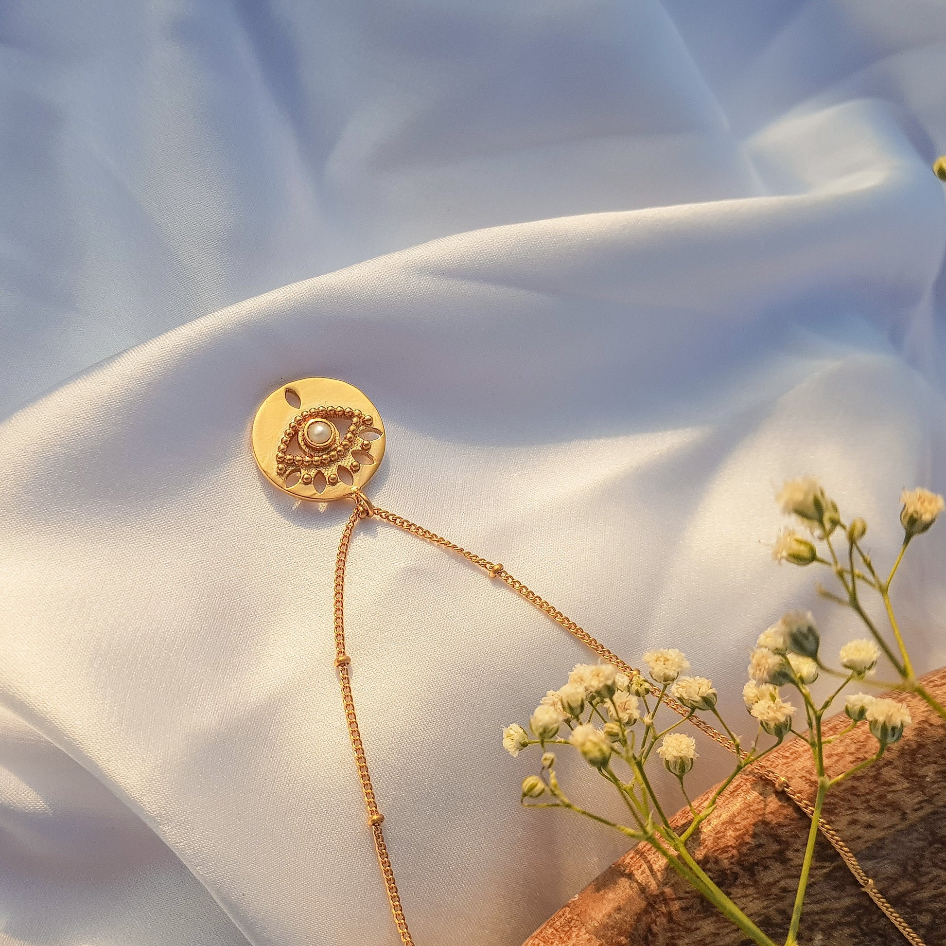The evil eye symbol is used to ward off evil intentions, nazar or the curse of envy that can bring negativity in one's life. Wearing evil eye symbol helps shield the wearer from evil stares and negative energies. This positive force provides the wearer with strength and protection against bad luck.