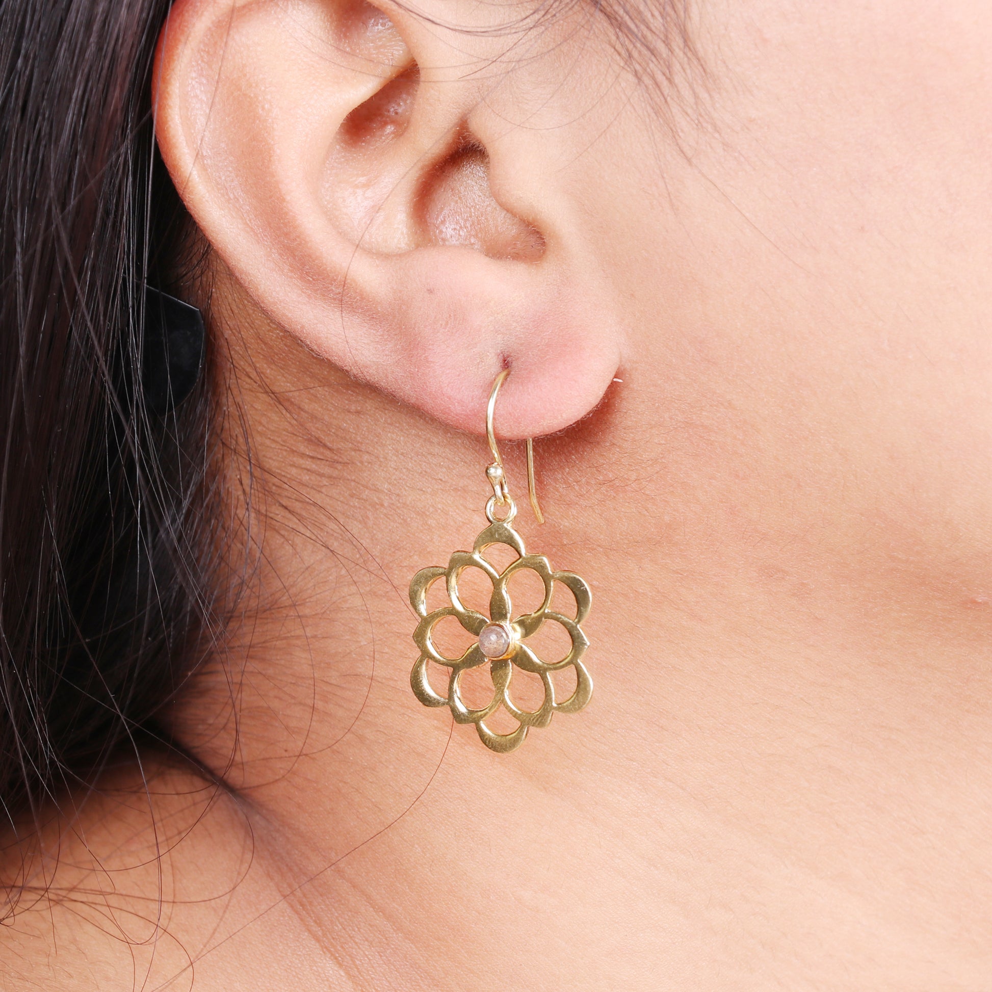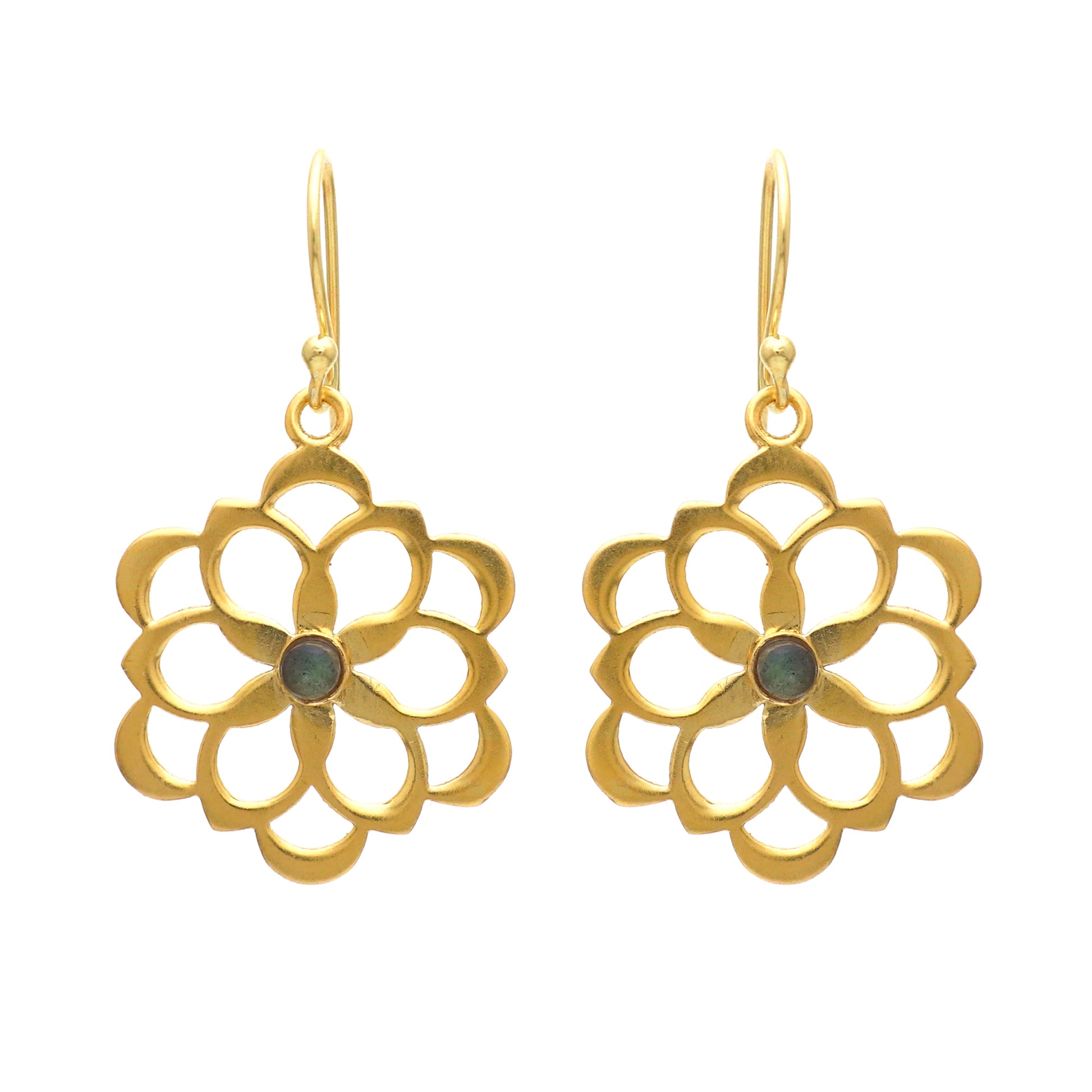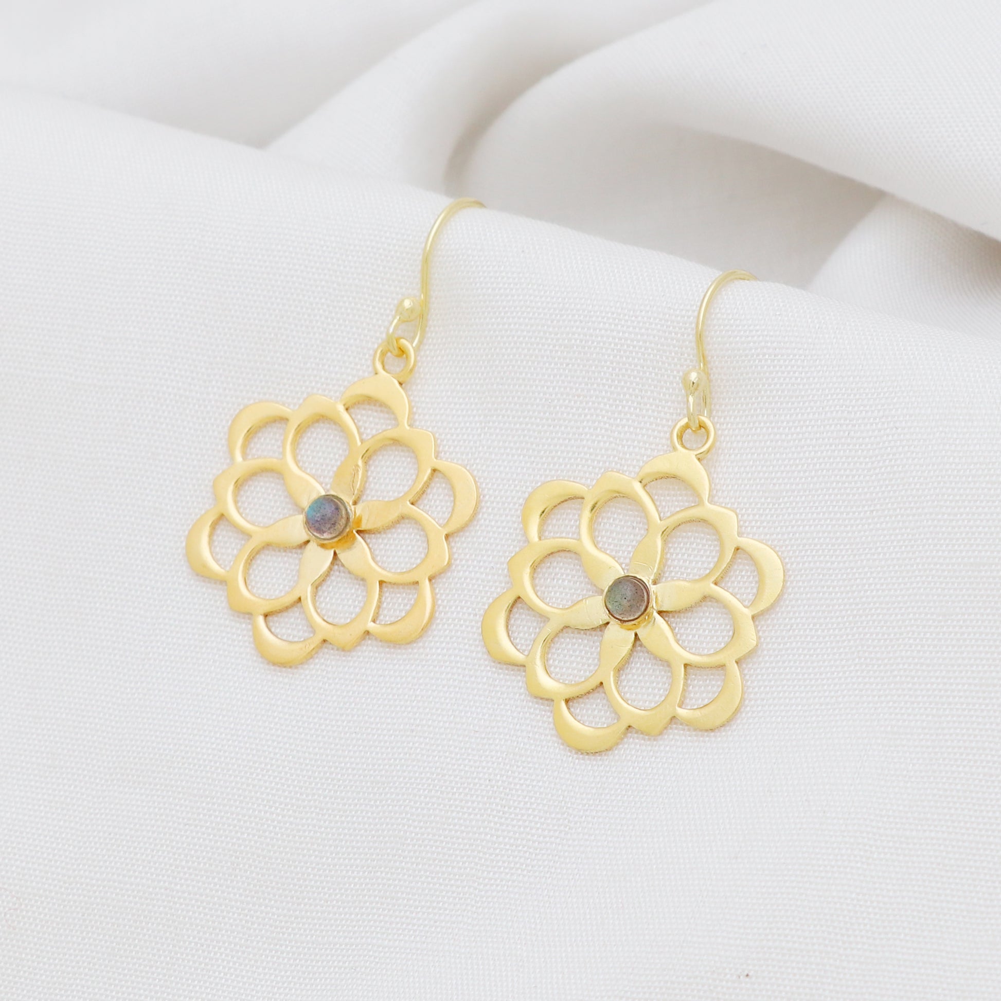 Flower shaped gold plated 925 sterling silver earrings with labradorite gemstone