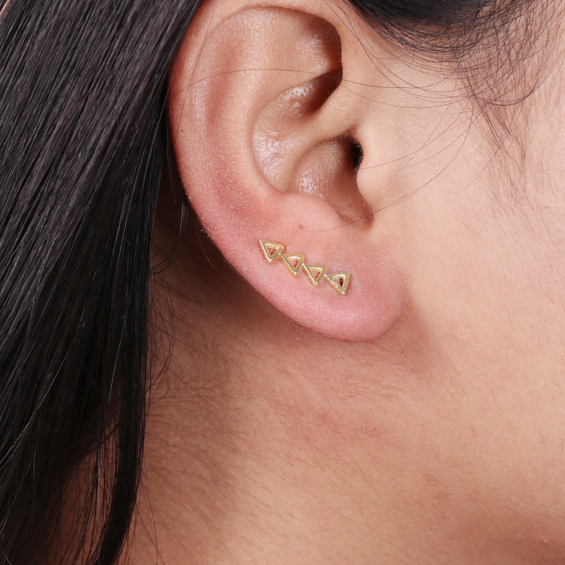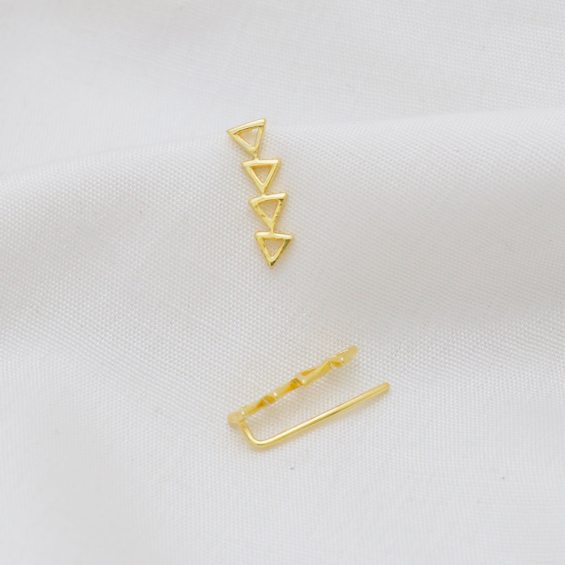Upgrade your earring game with our gold plated 925 sterling silver climber earrings. Made from high-quality materials, these earrings offer a touch of elegance and sophistication to any outfit. With their unique design, they gently hug your earlobe for a comfortable and secure fit. Elevate your style with these stunning and versatile earrings.