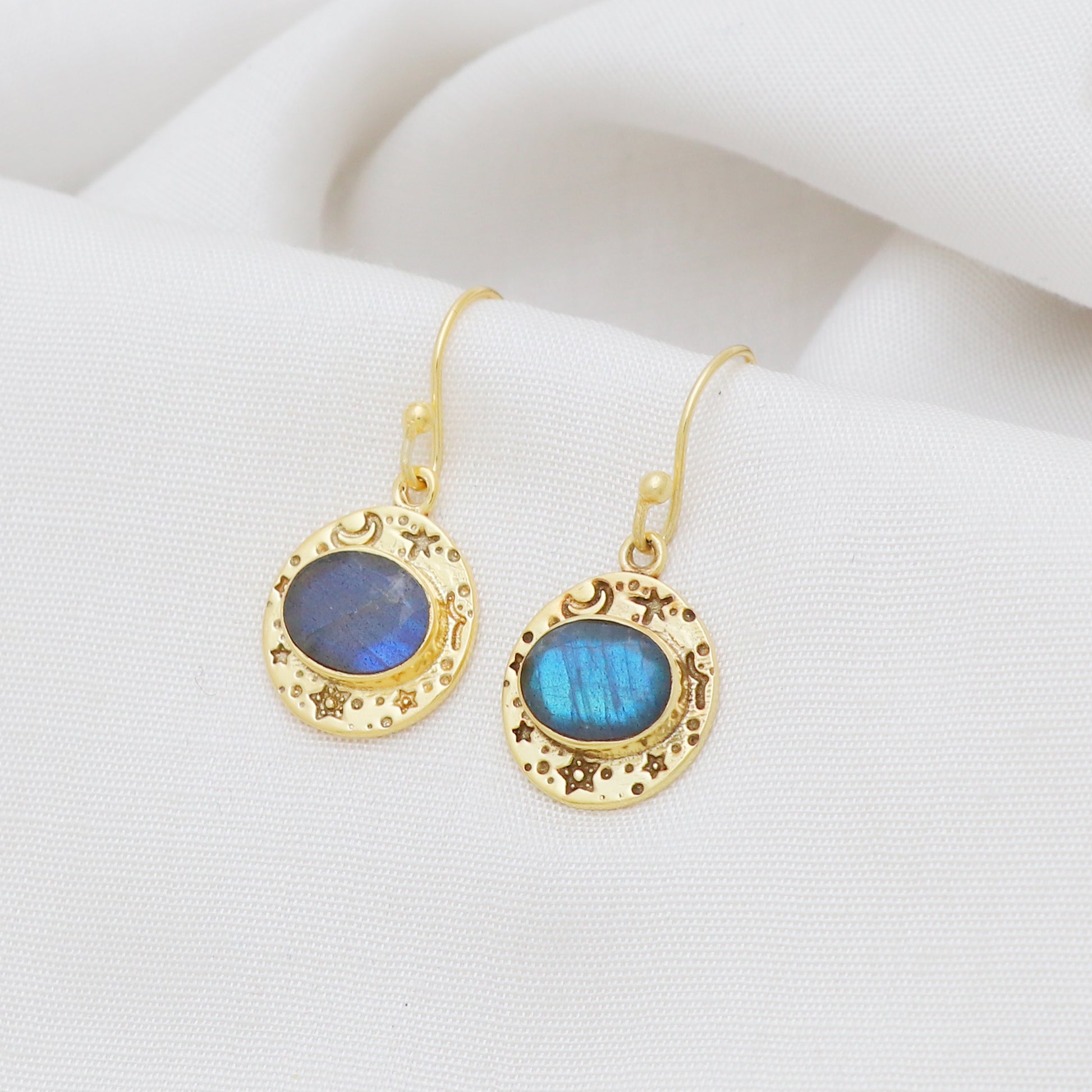 Gold plated 925 sterling silver earrings with labradorite gemstone