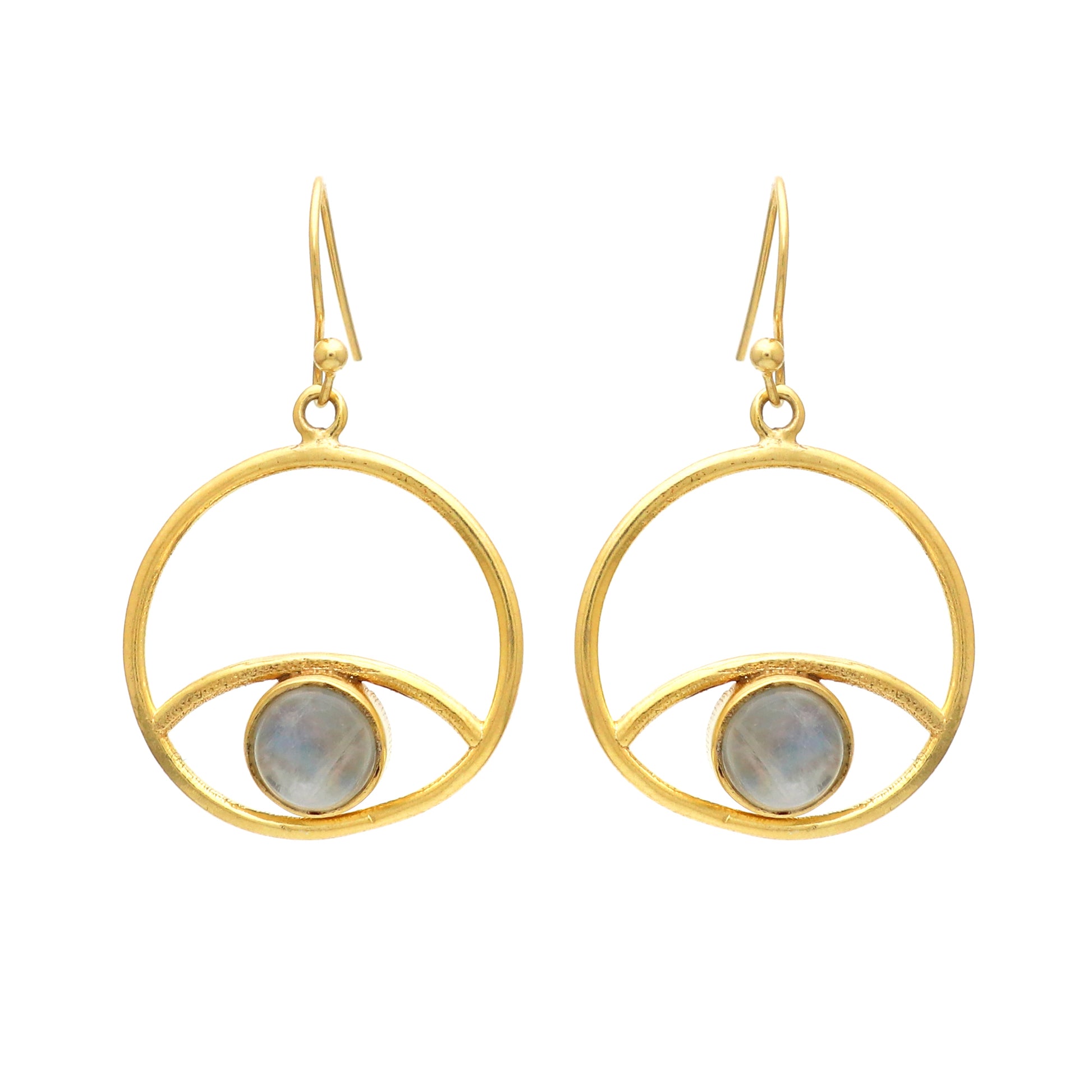 Gold plated 925 sterling silver earrings with rainbow moonstone gemstone