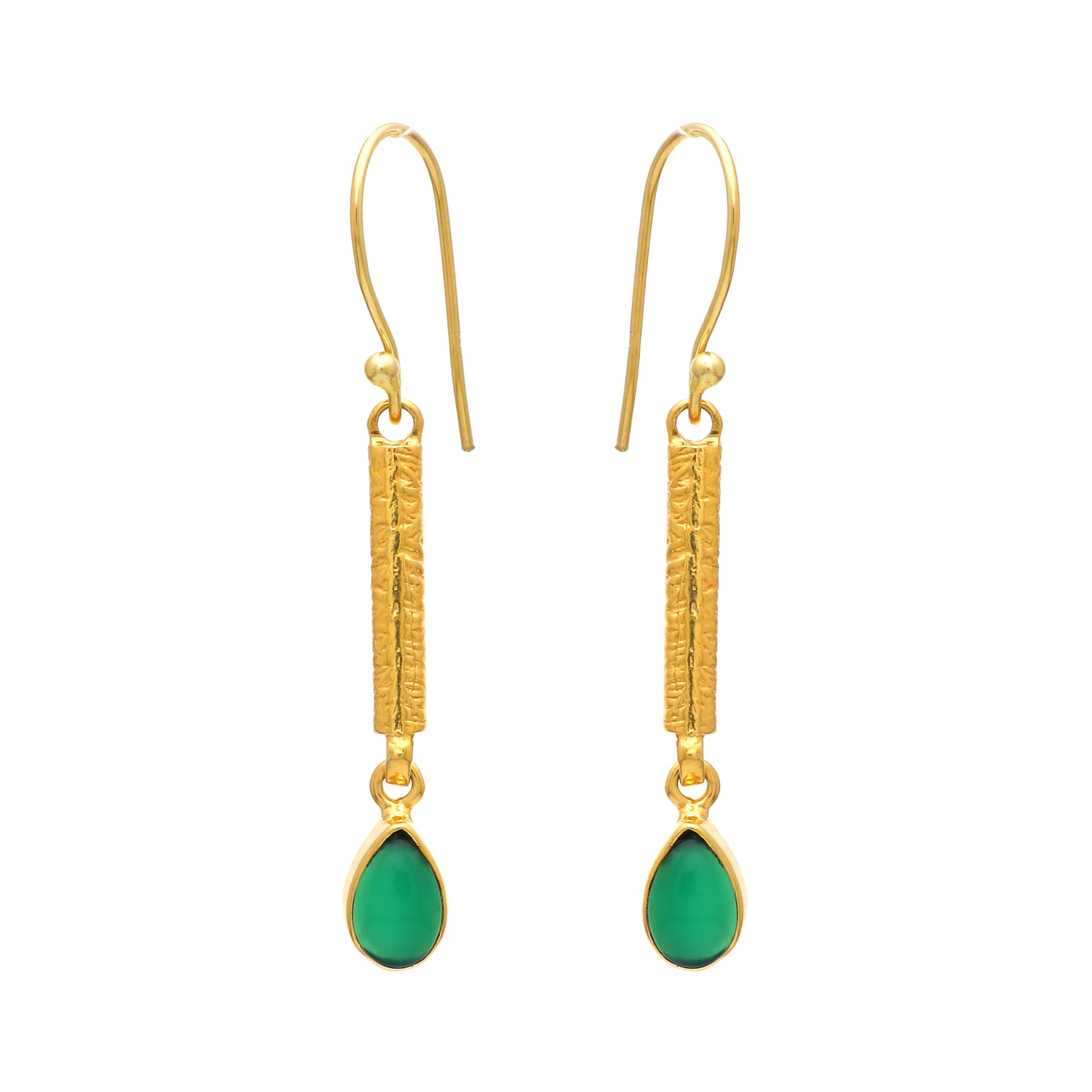 Gold plated 925 sterling silver textured earrings with green onyx gemstone