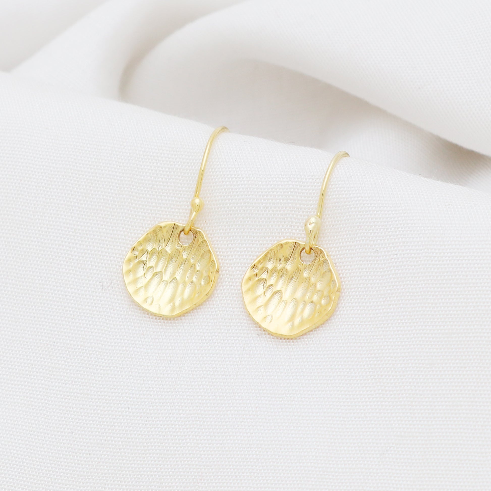 Crafted from 925 sterling silver, these earrings feature a hammered texture and luxurious gold plating. The unique texture adds a touch of interest and the high-quality materials make for a lasting investment. Elevate any look with these expertly designed and crafted earrings.