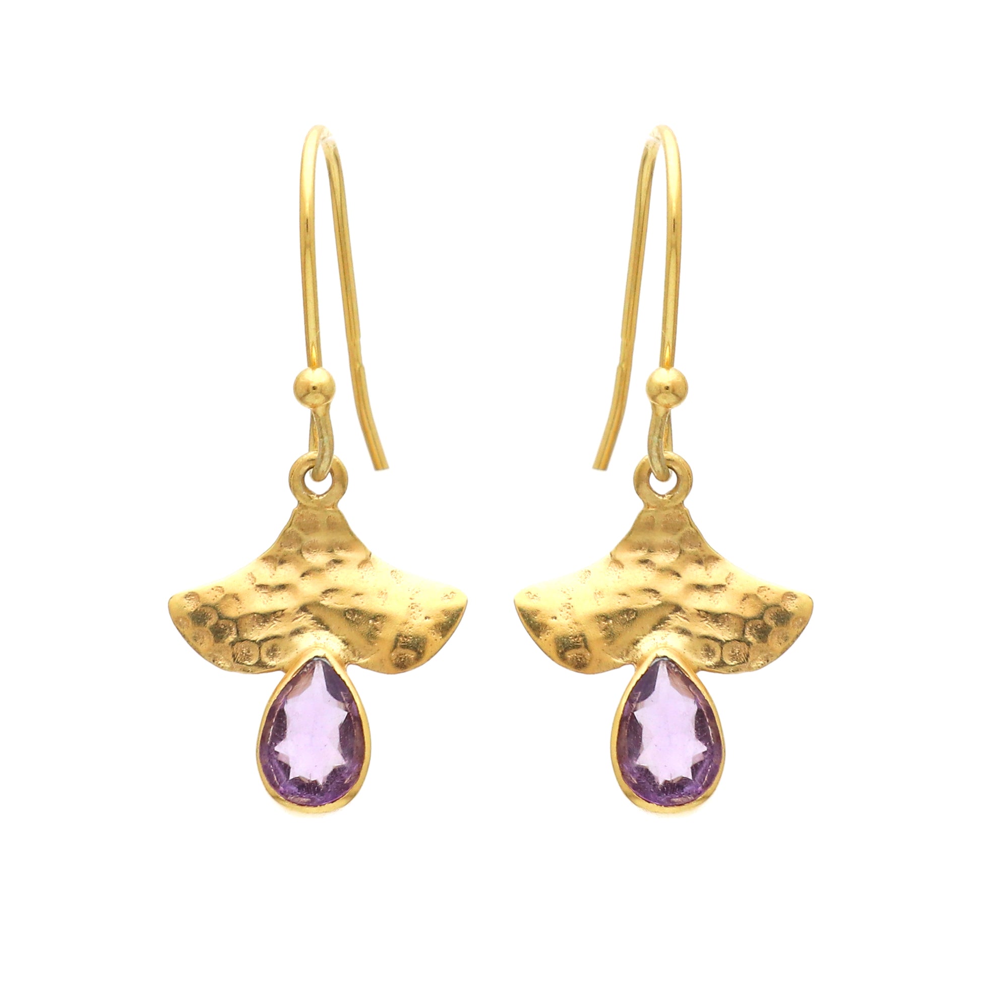Hammered texture gold plated 925 sterling silver earrings with amethyst gemstone