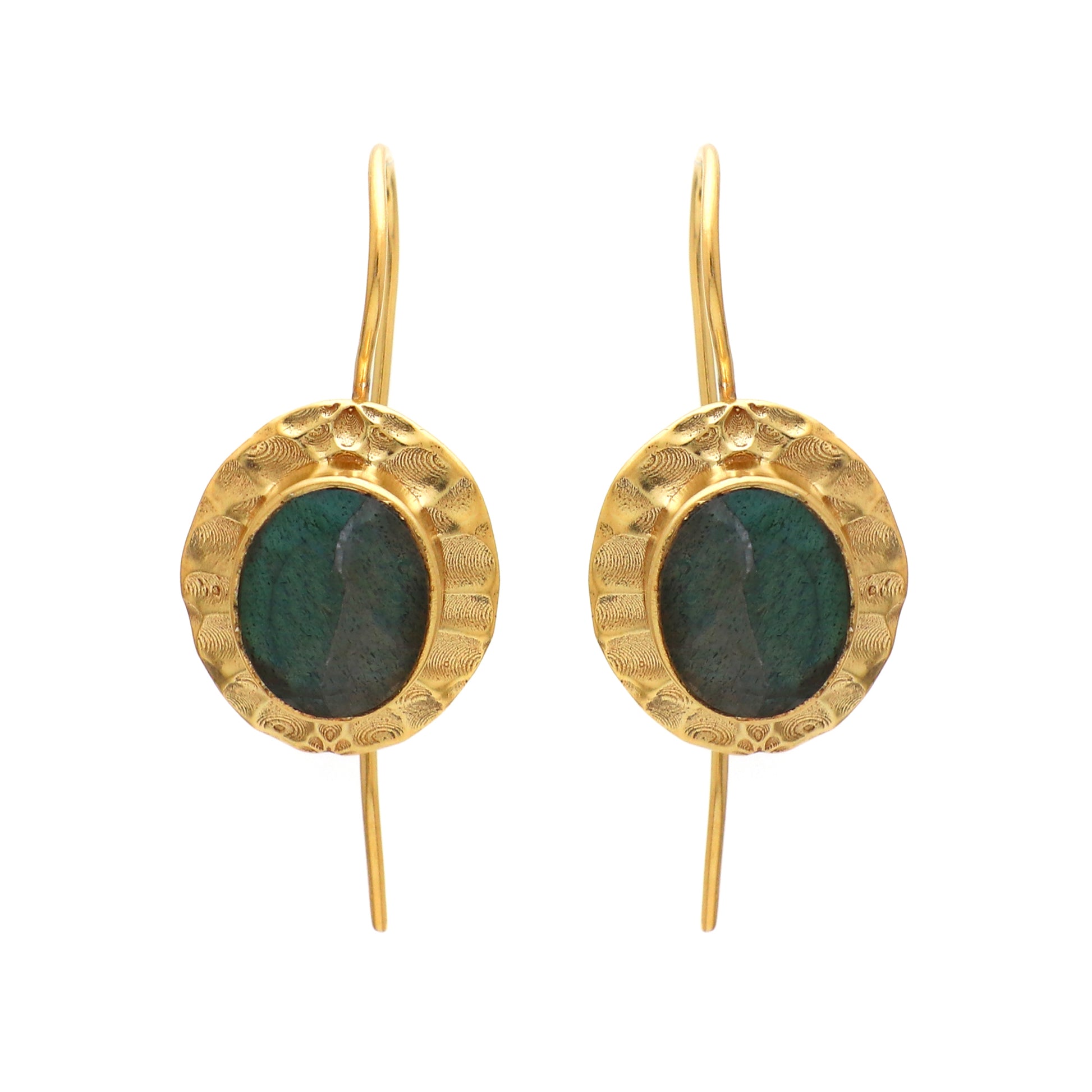 Elevate your style with our stunning hammered labradorite earrings, made with luxurious gold plated 925 sterling silver. The unique hammered design adds a touch of modern elegance, while the labradorite stone glistens with subtle hues. Embrace sophistication and let these earrings be your statement piece.