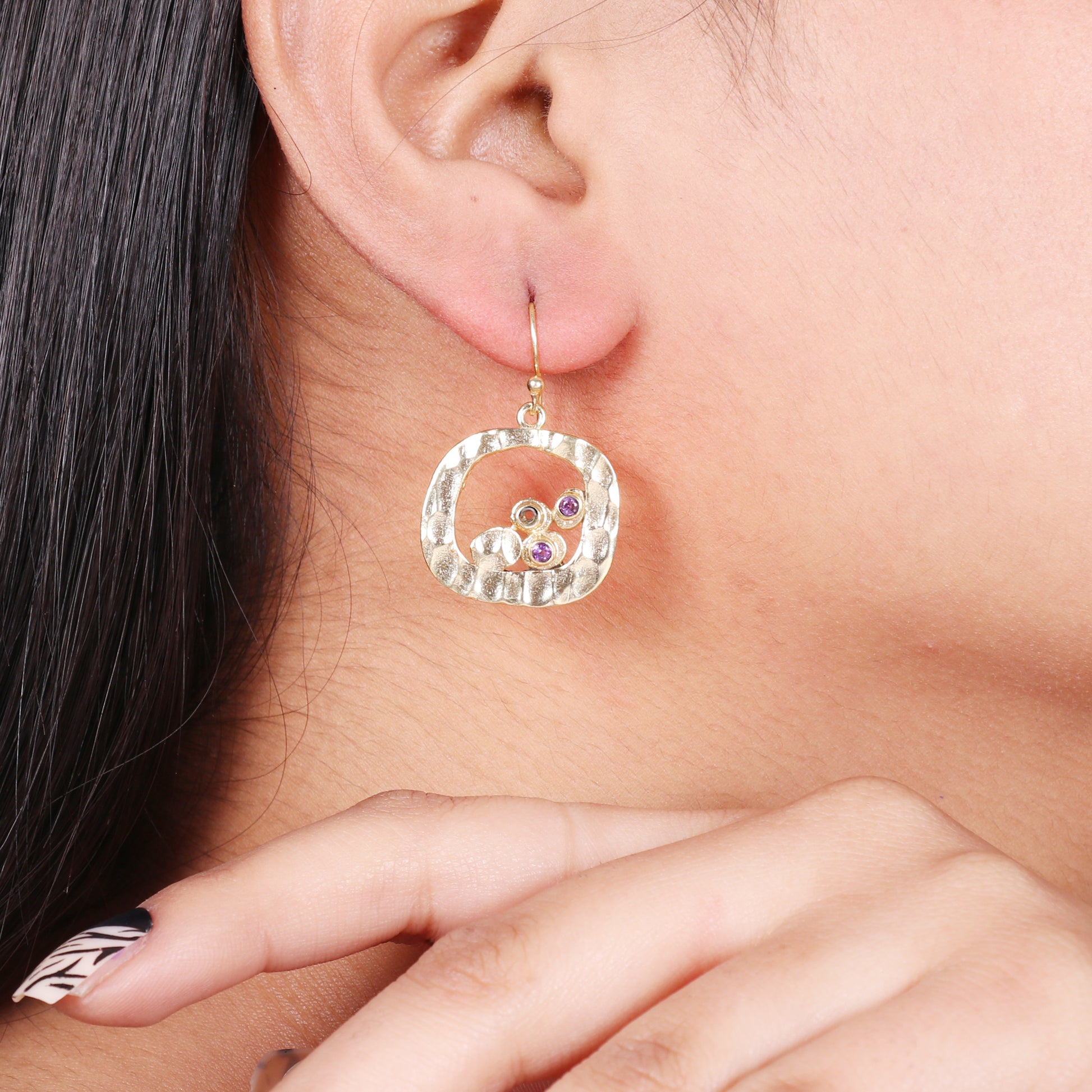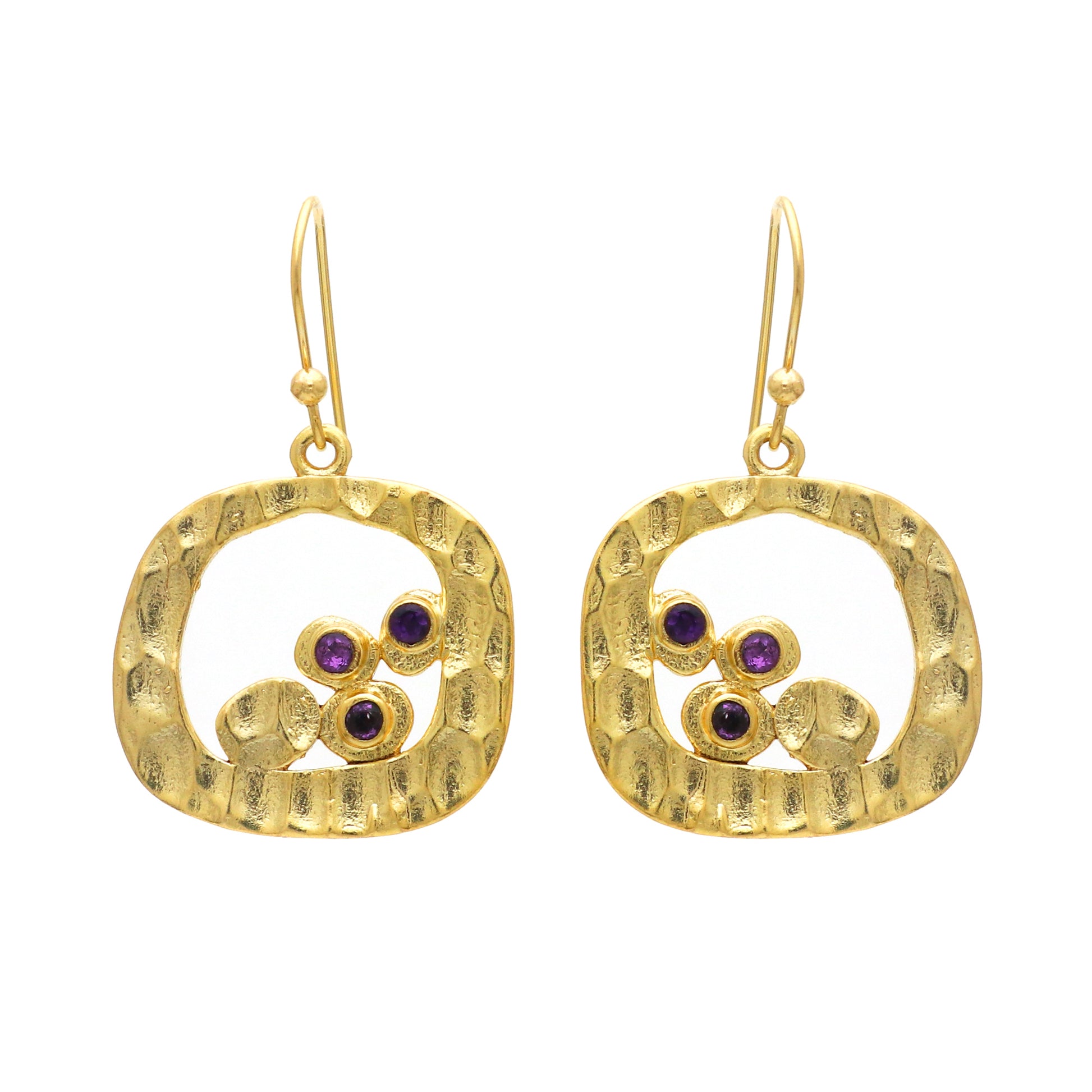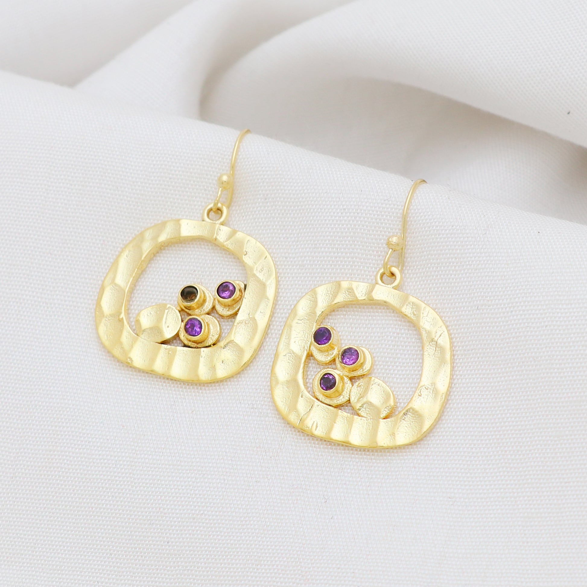 Hammered texture gold plated 925 sterling silver earrings with amethyst gemstone
