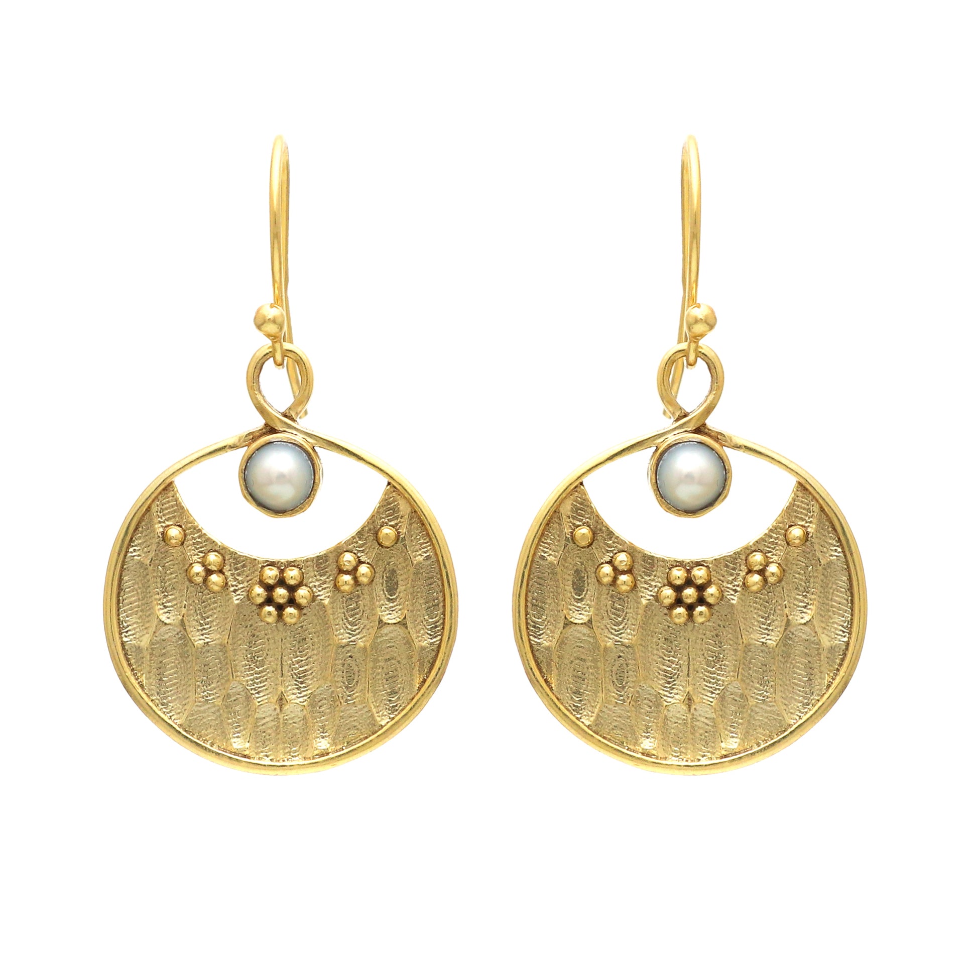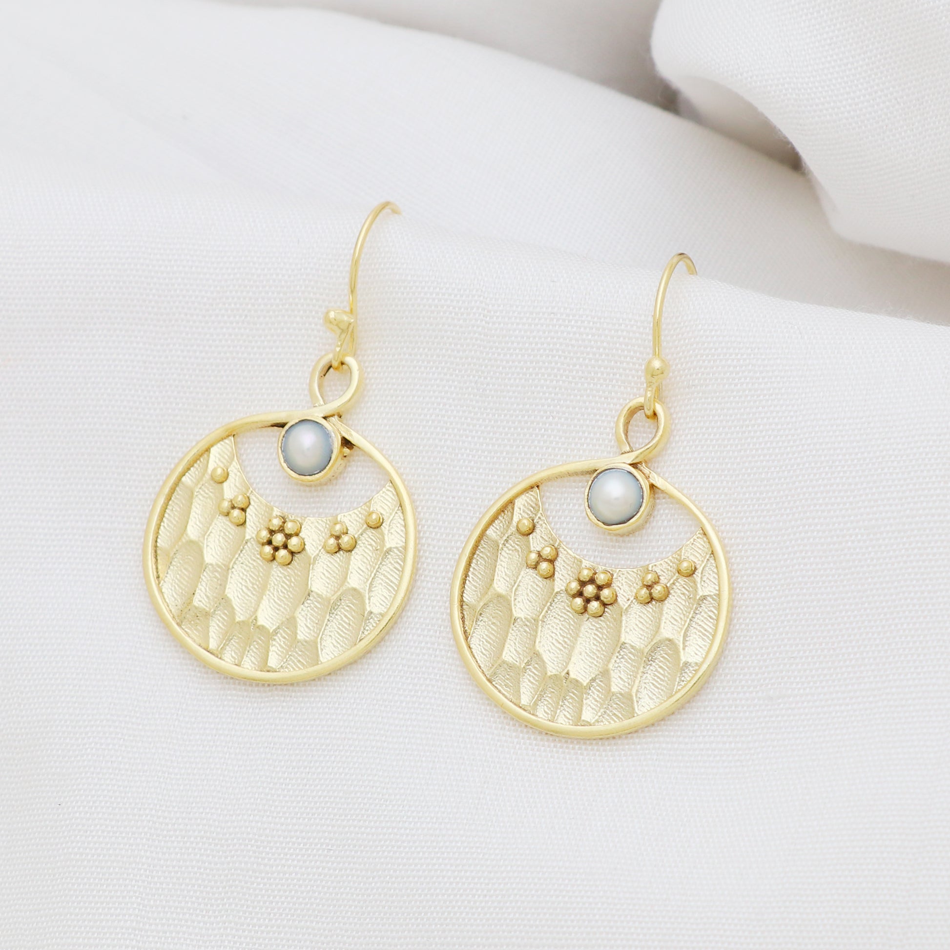Hammered texture gold plated 925 sterling silver earrings with pearl gemstone