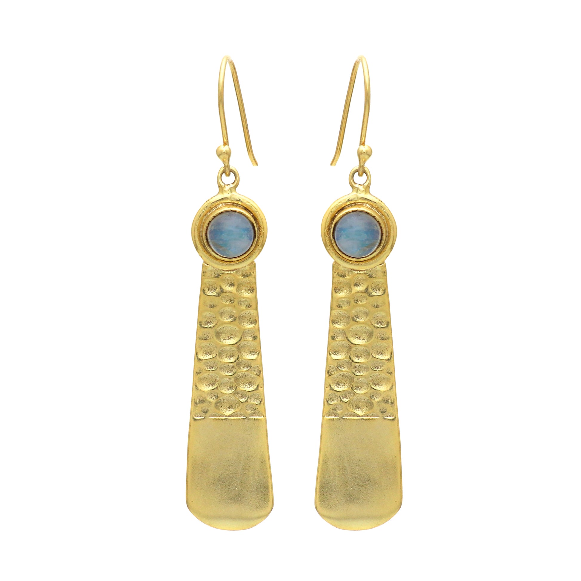 Hammered texture gold plated 925 sterling silver earrings with rainbow moonstone gemstone