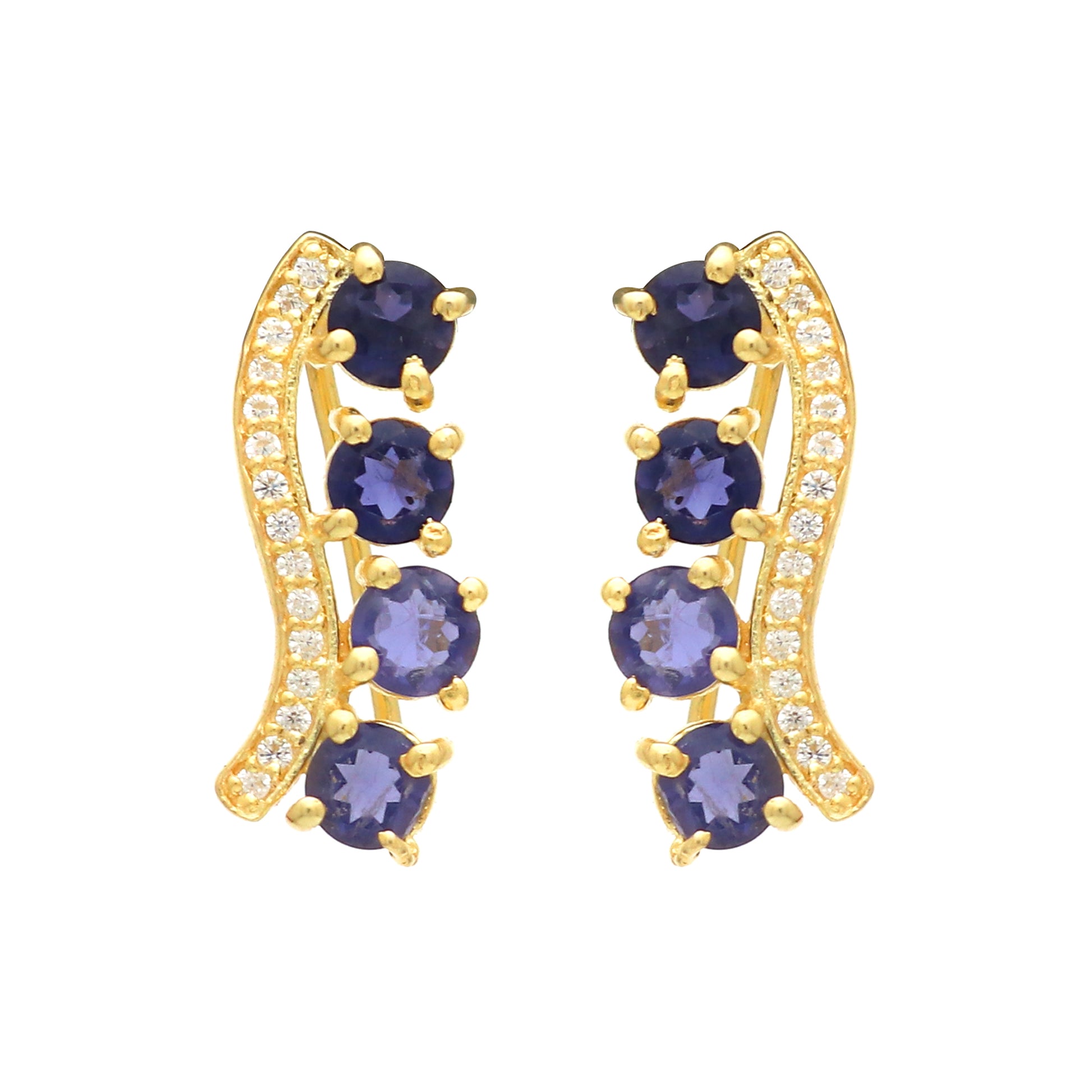 Iolite and zircon gemstone climber earring in 925 gold plated sterling silver
