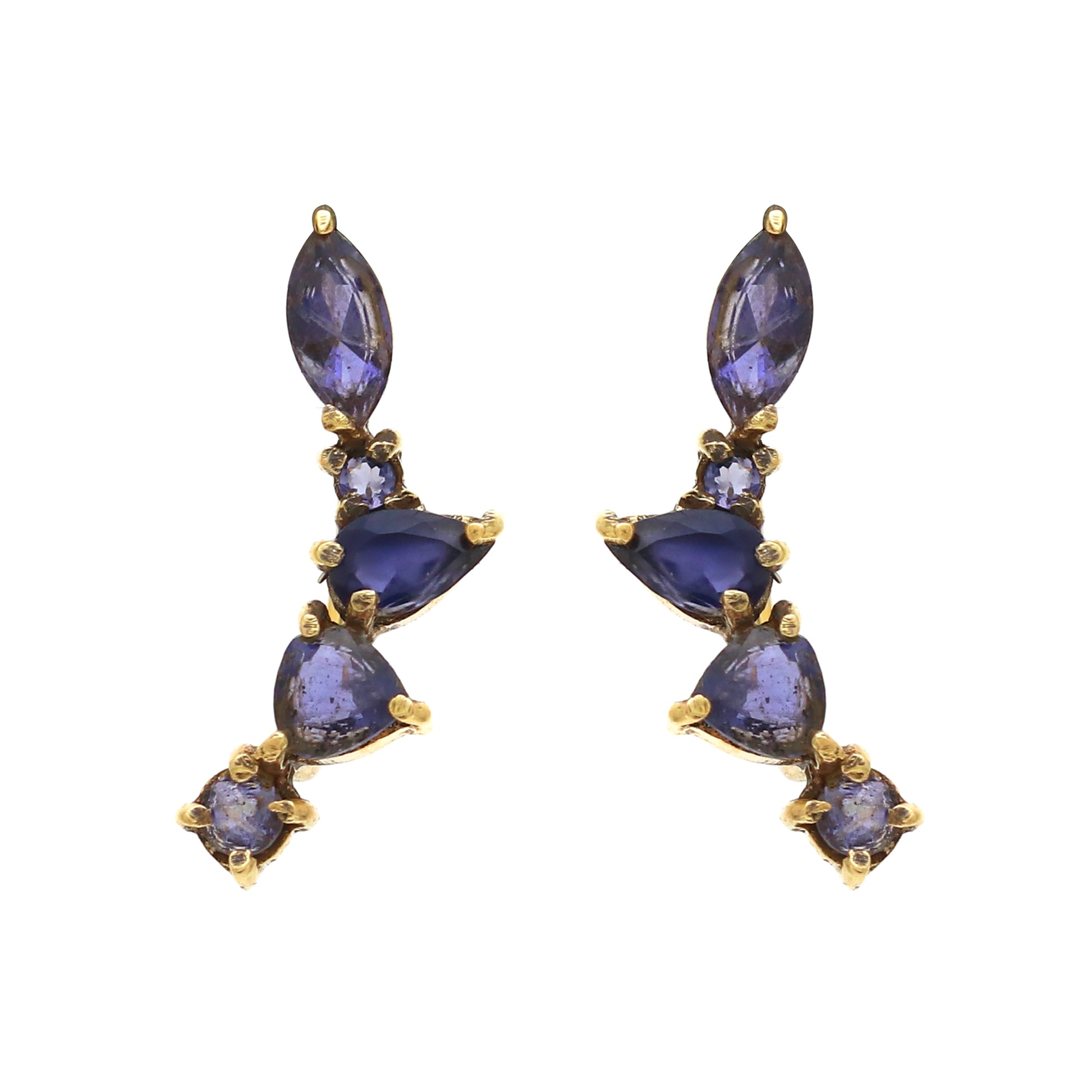Iolite gemstone climber earring in 925 gold plated sterling silver