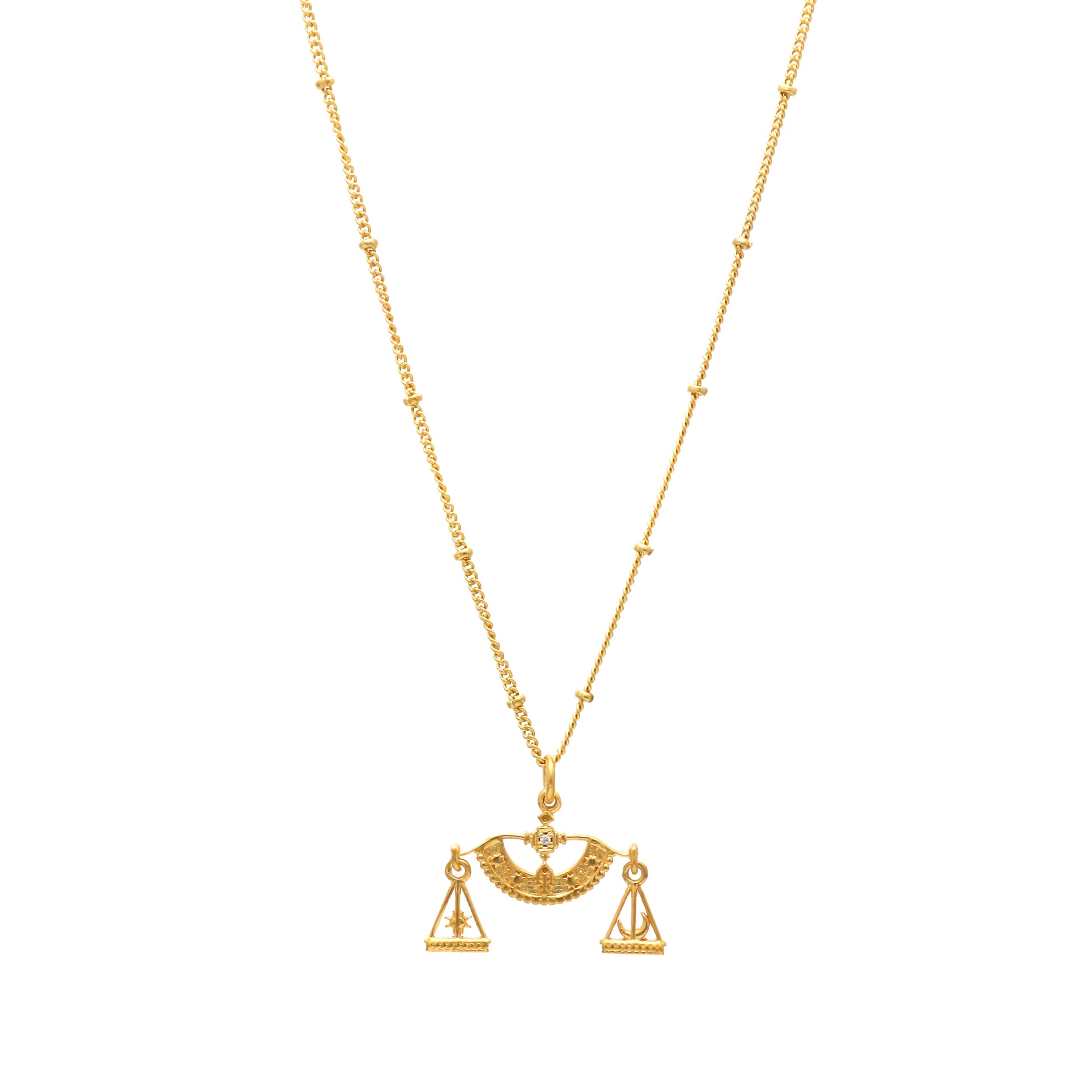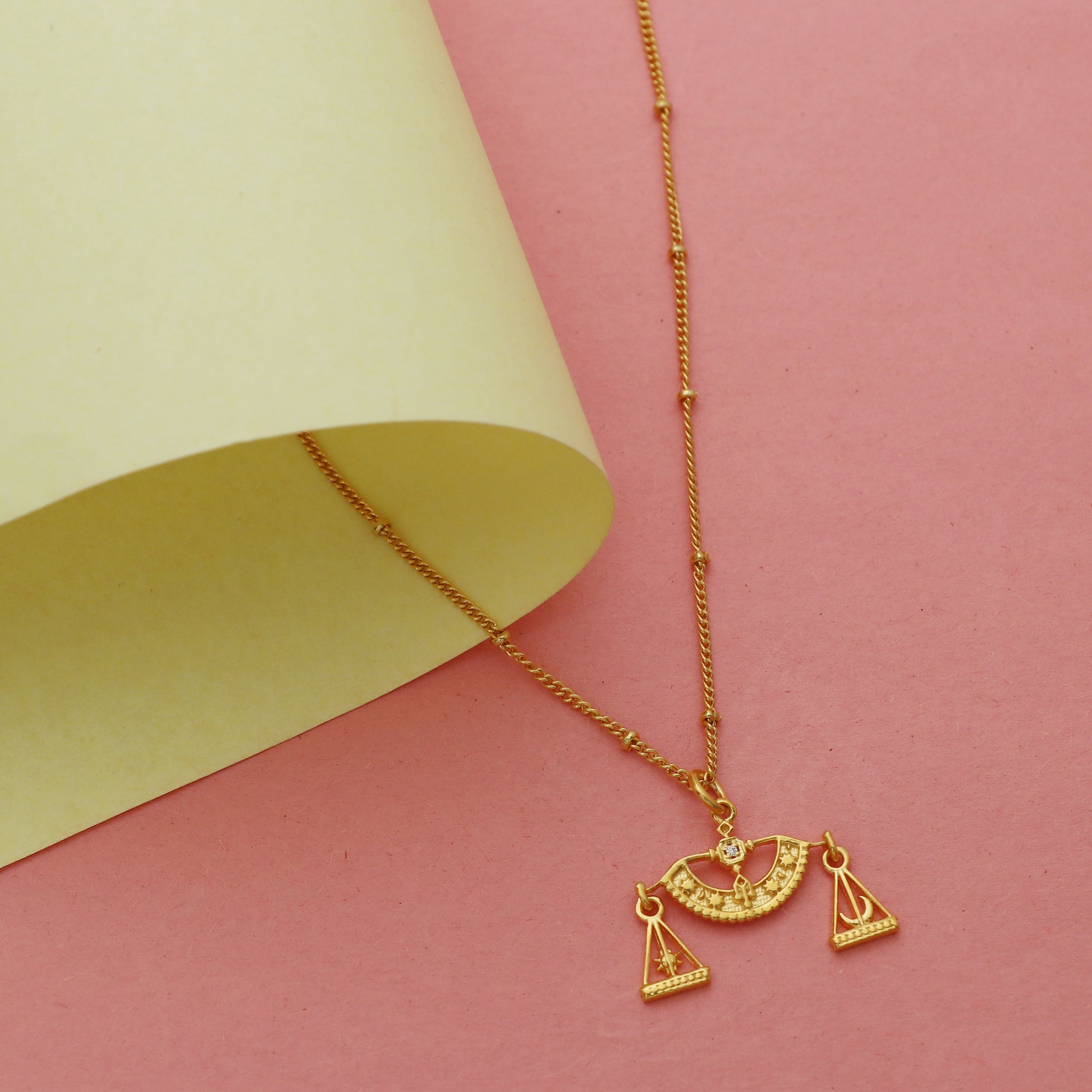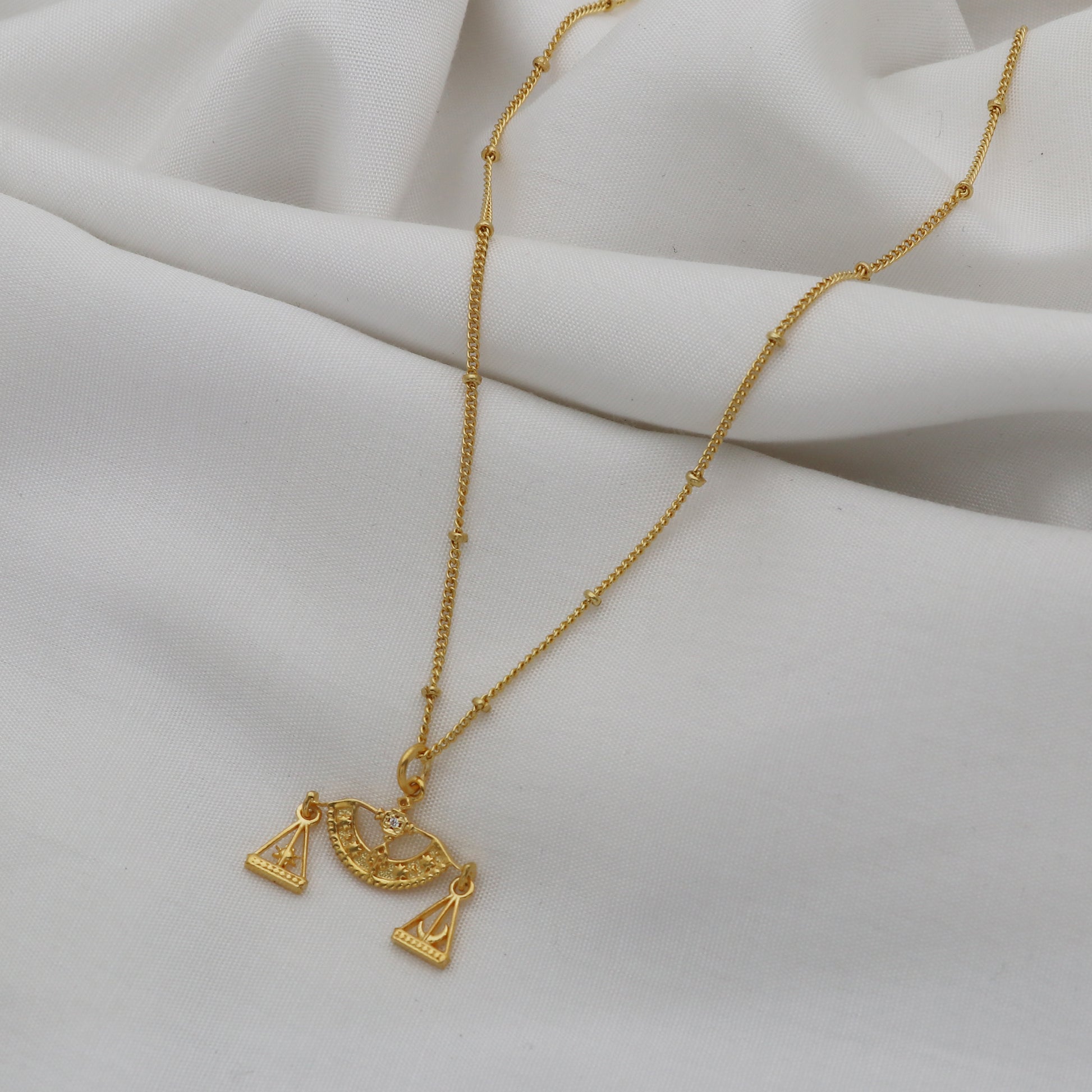 Libra Zodiac Sign chain necklace with Balance Scales Symbol charm and Zircon Stones
