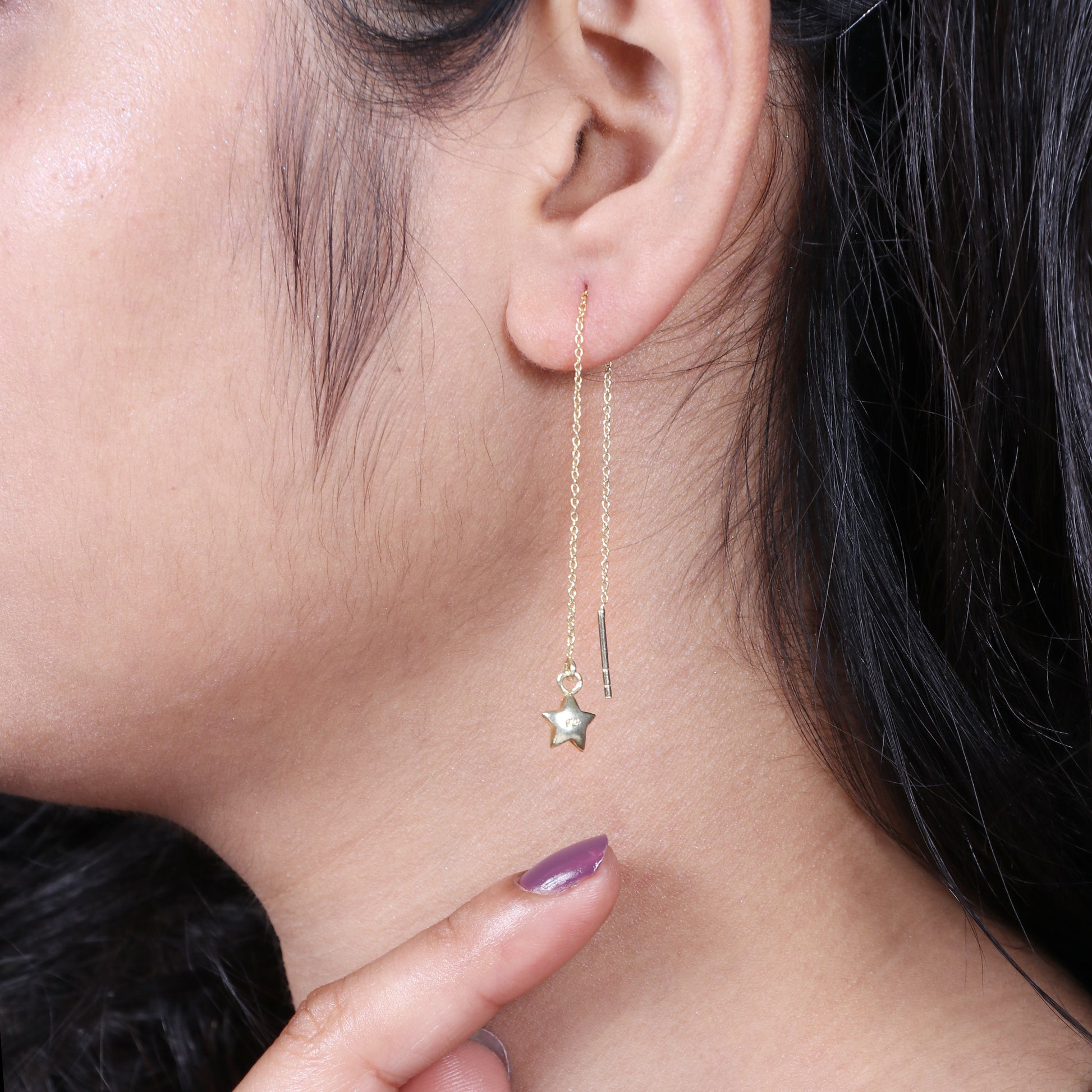 Minimal Star charm threader earrings in gold plated 925 sterling silver for everyday wear