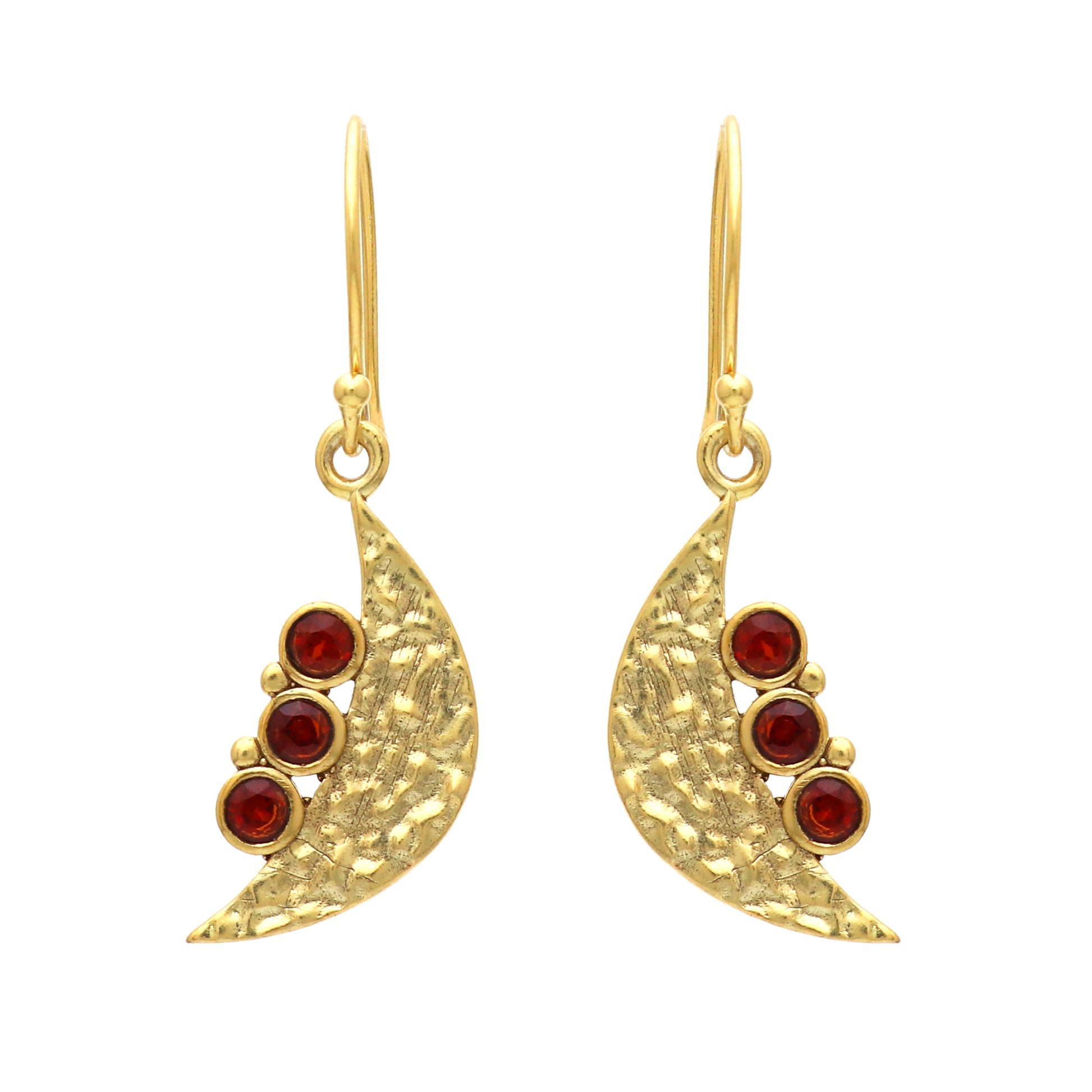 Moon symbol gold plated 925 sterling silver textured earrings with garnet gemstone