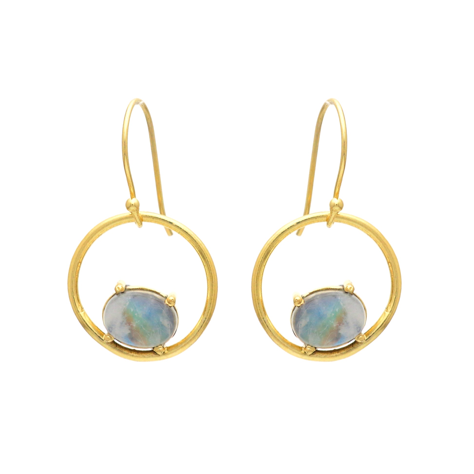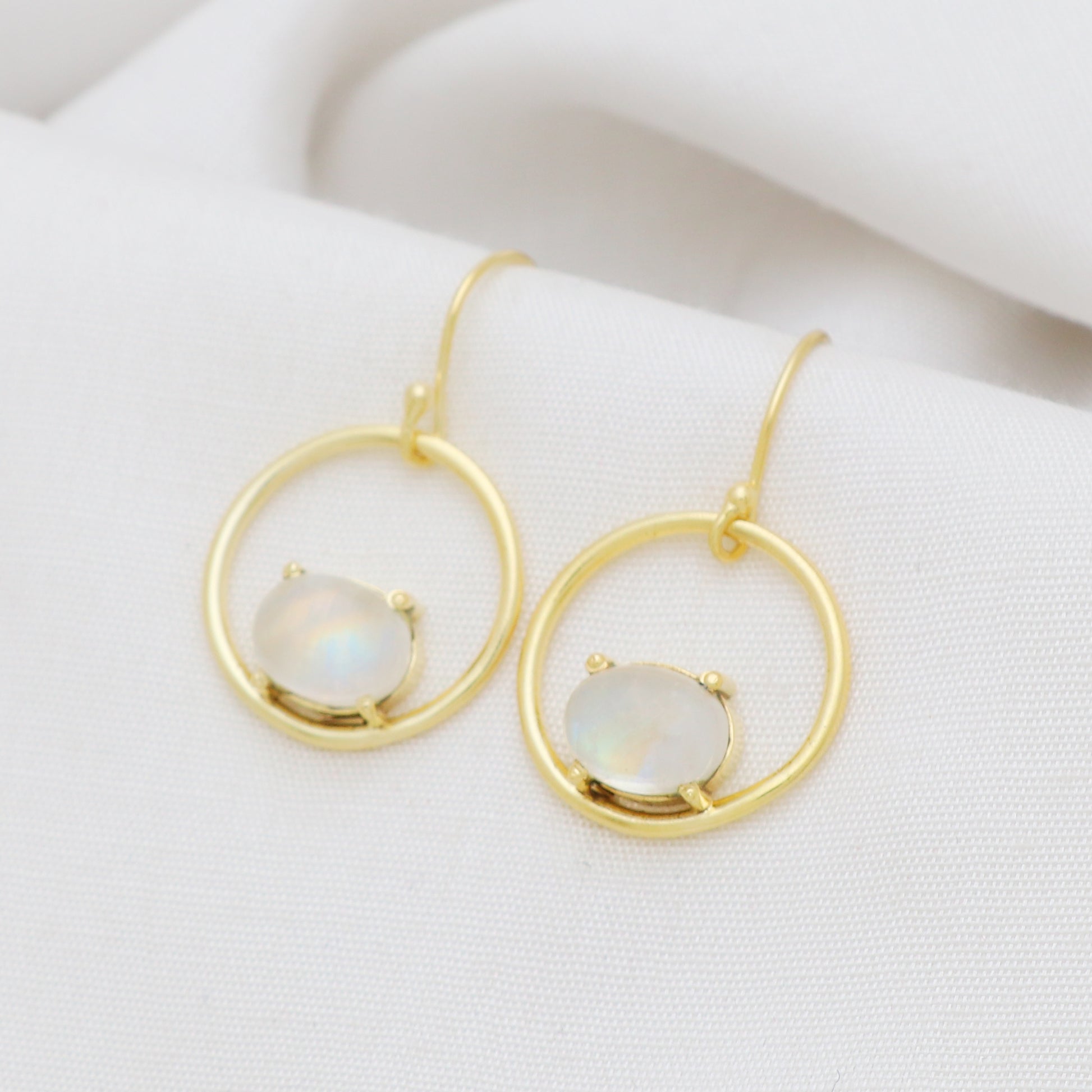 Rainbow moonstone gemstone earring in gold plated 925 sterling silver