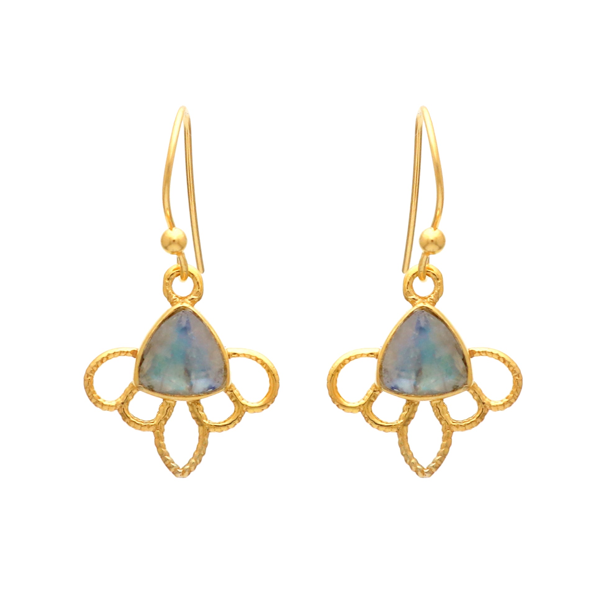 Rainbow moonstone gemstone earring in gold plated 925 sterling silver