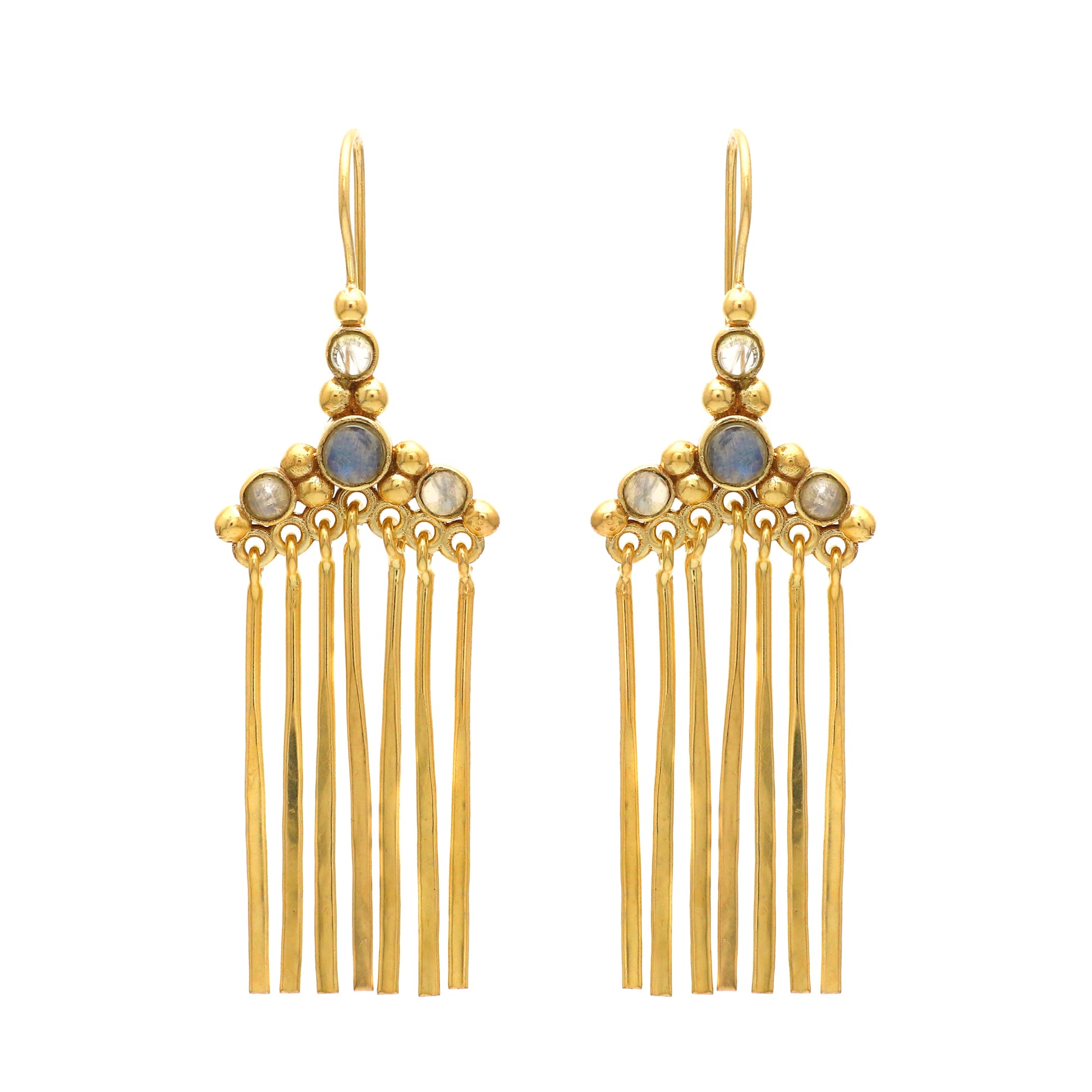 Rainbow moonstone gemstone earring in gold plated 925 sterling silver