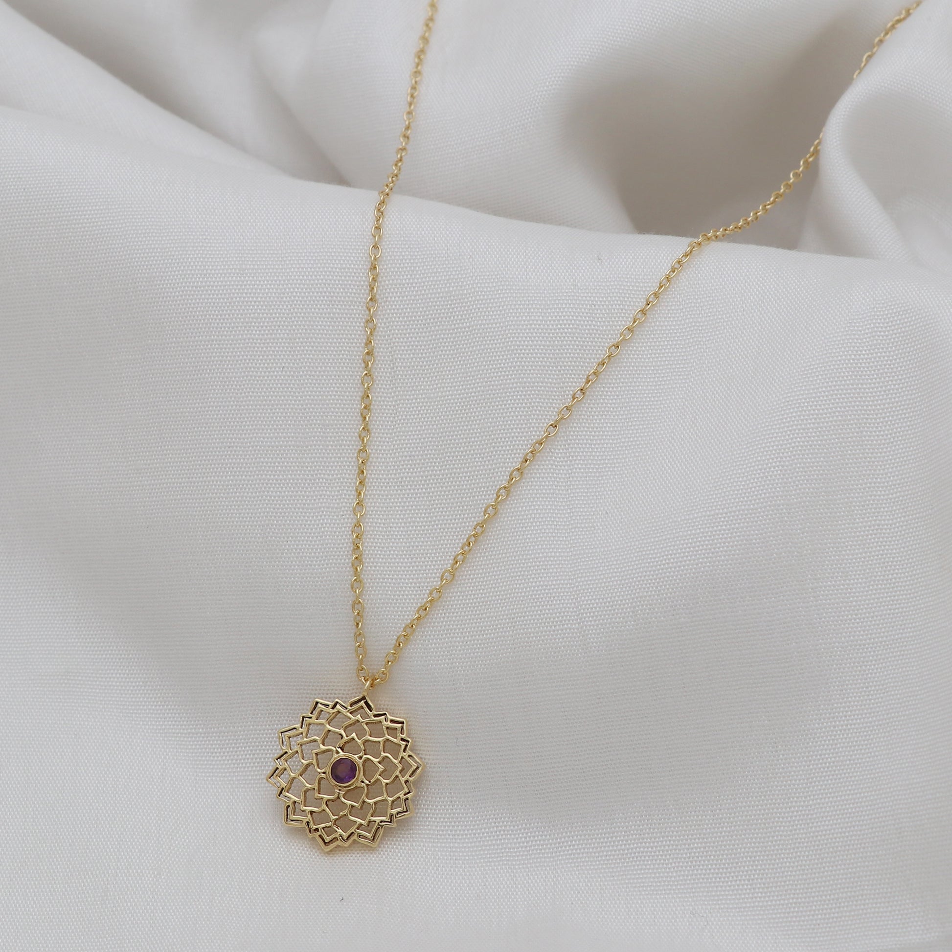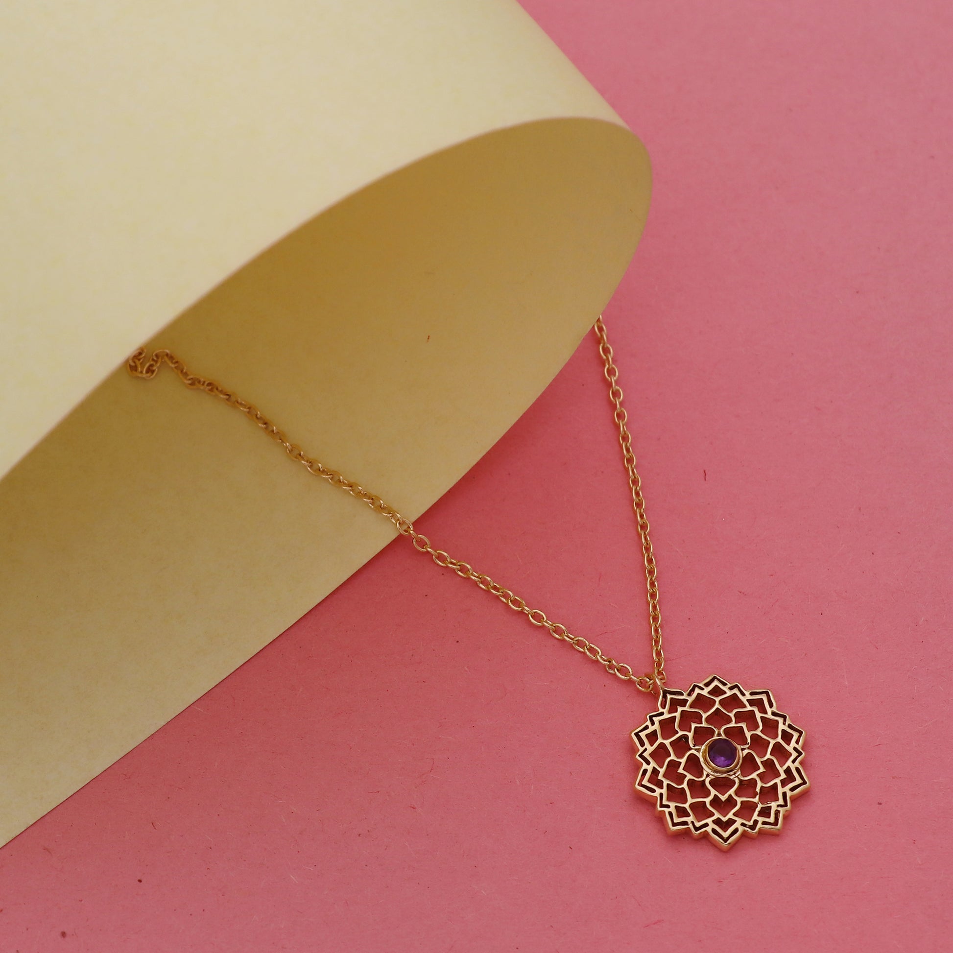 Sahasrara Crown Chakra Charm necklace with Amethyst gemstone