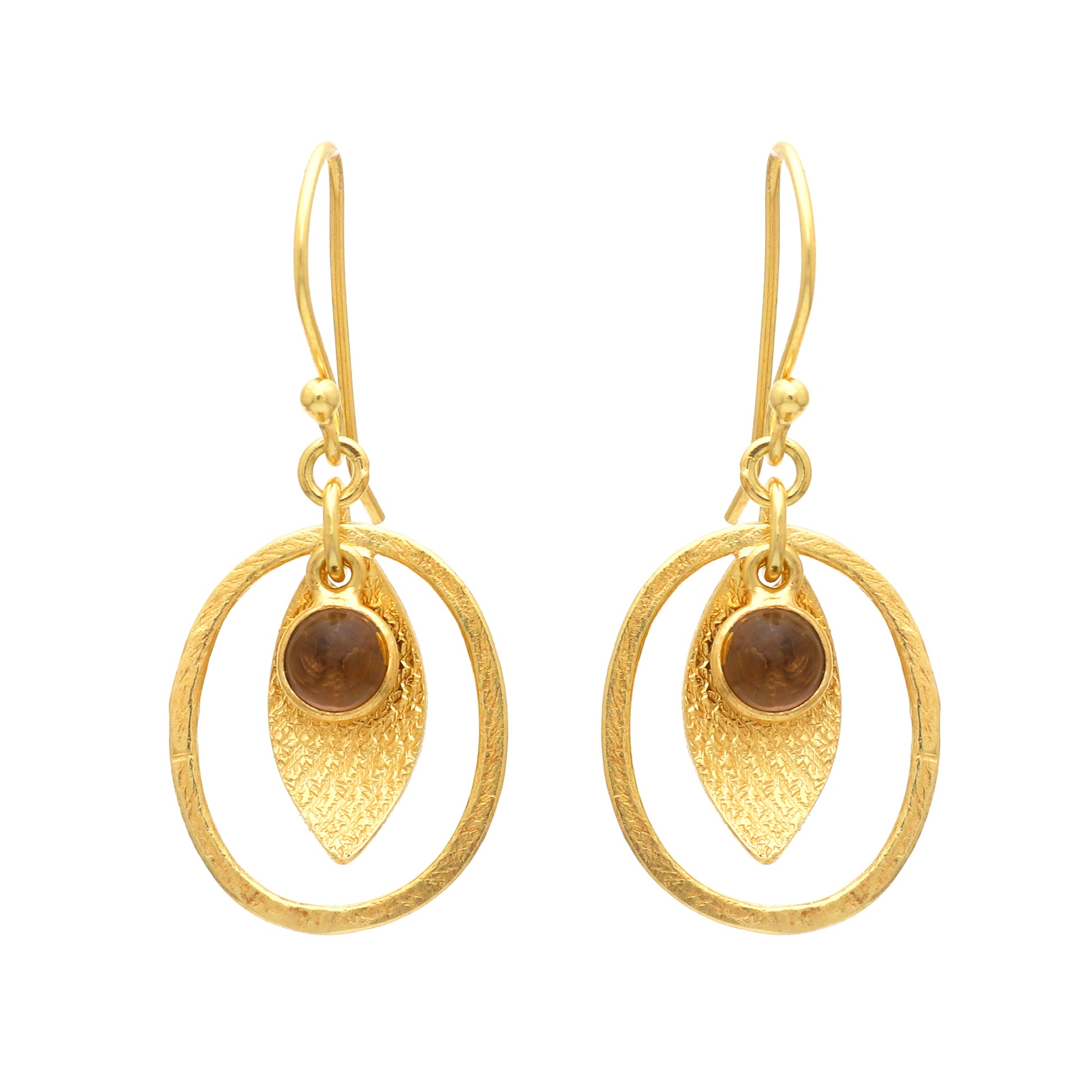 Expertly crafted with a smoky quartz gemstone, these earrings offer a touch of elegance to any outfit. Encased in gold plated 925 sterling silver, the textured design adds a unique touch of style. Perfect for both casual and formal occasions, these earrings are a must-have for any jewelry collection.