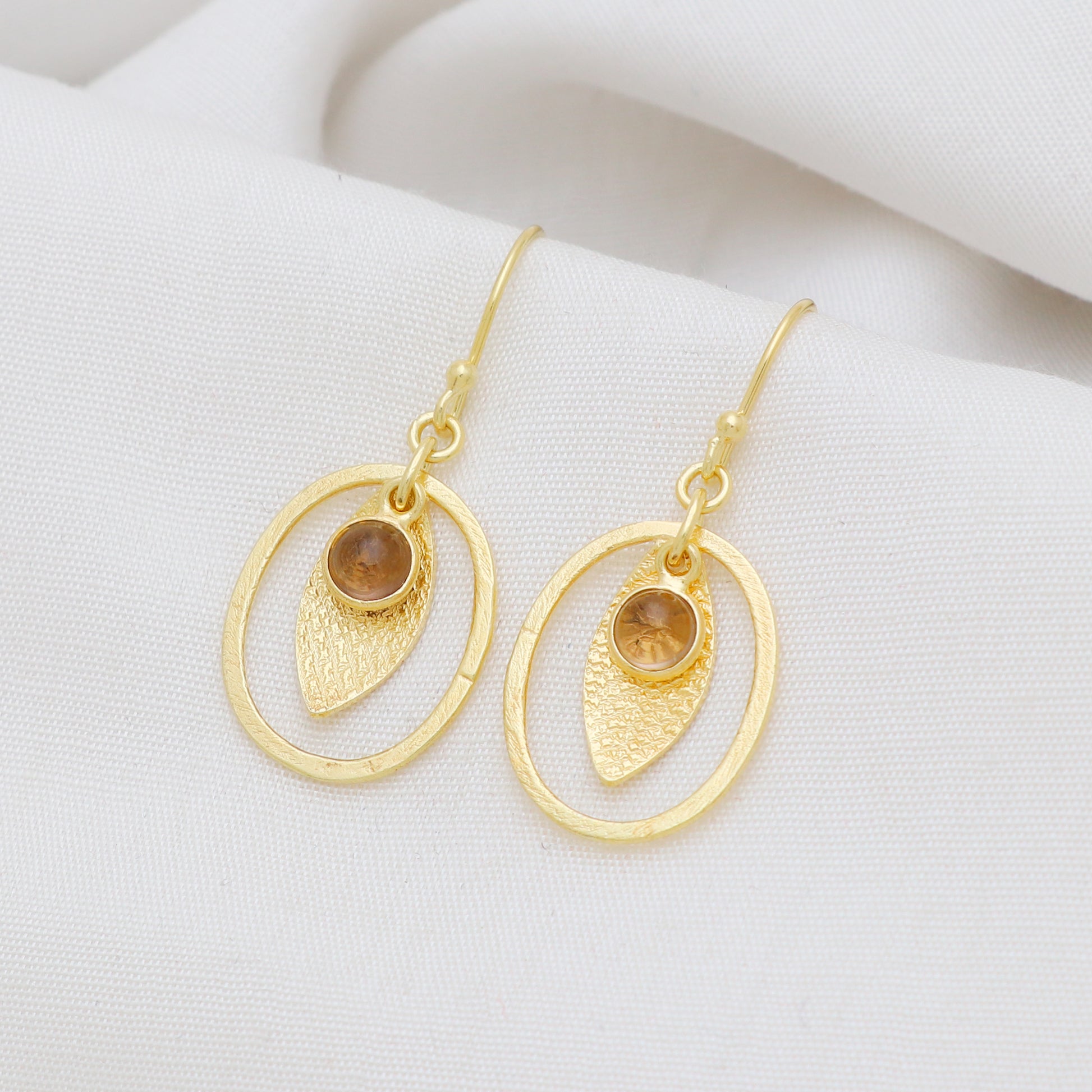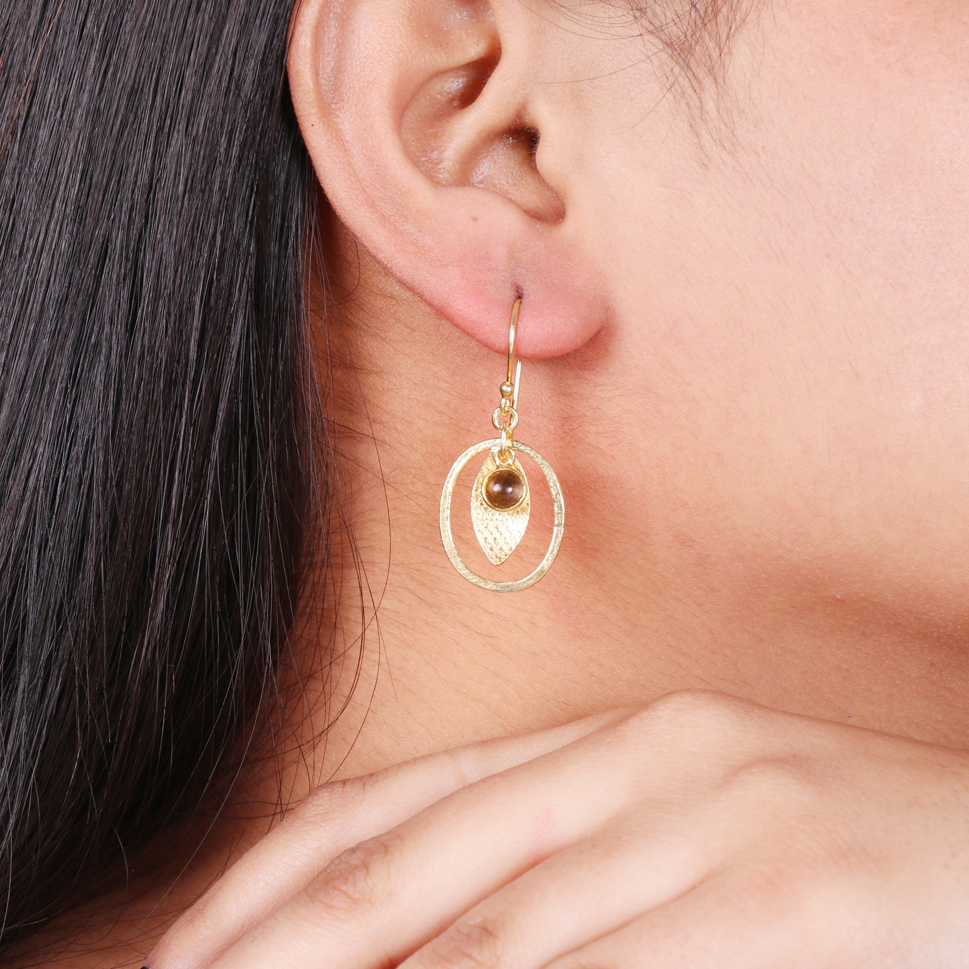 Smoky quartz gemstone textured earring in gold plated 925 sterling silver