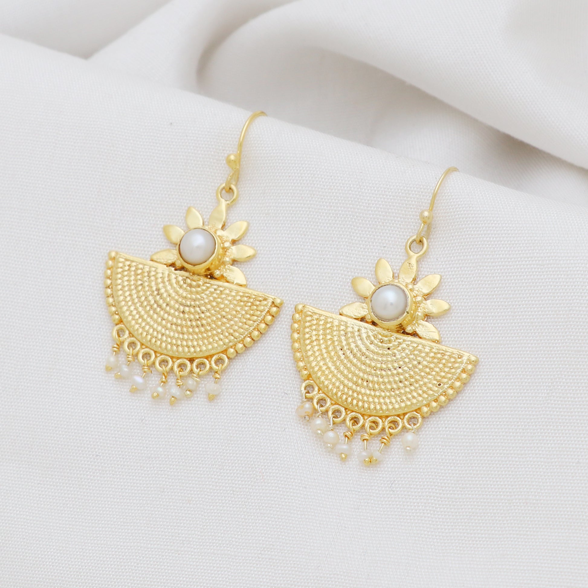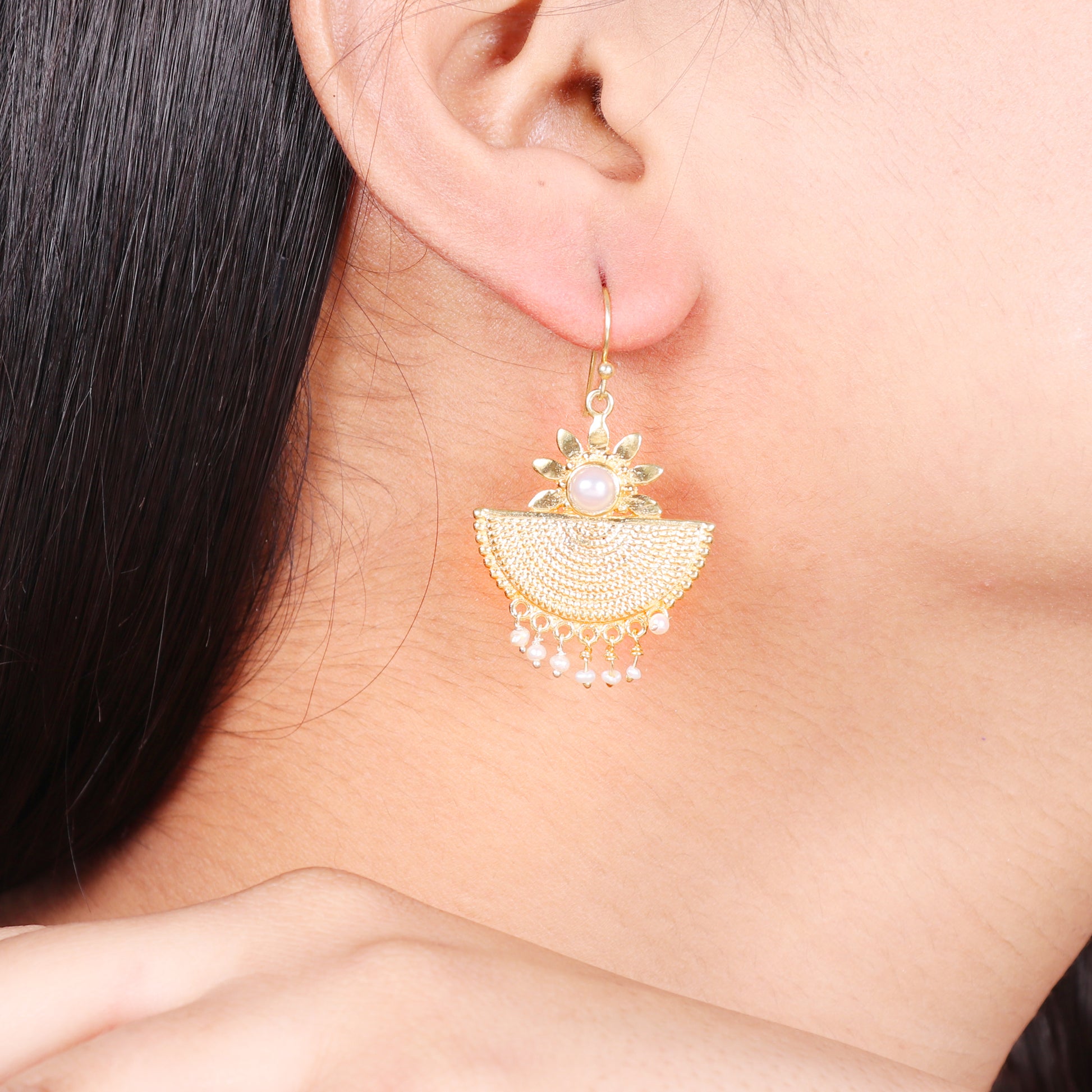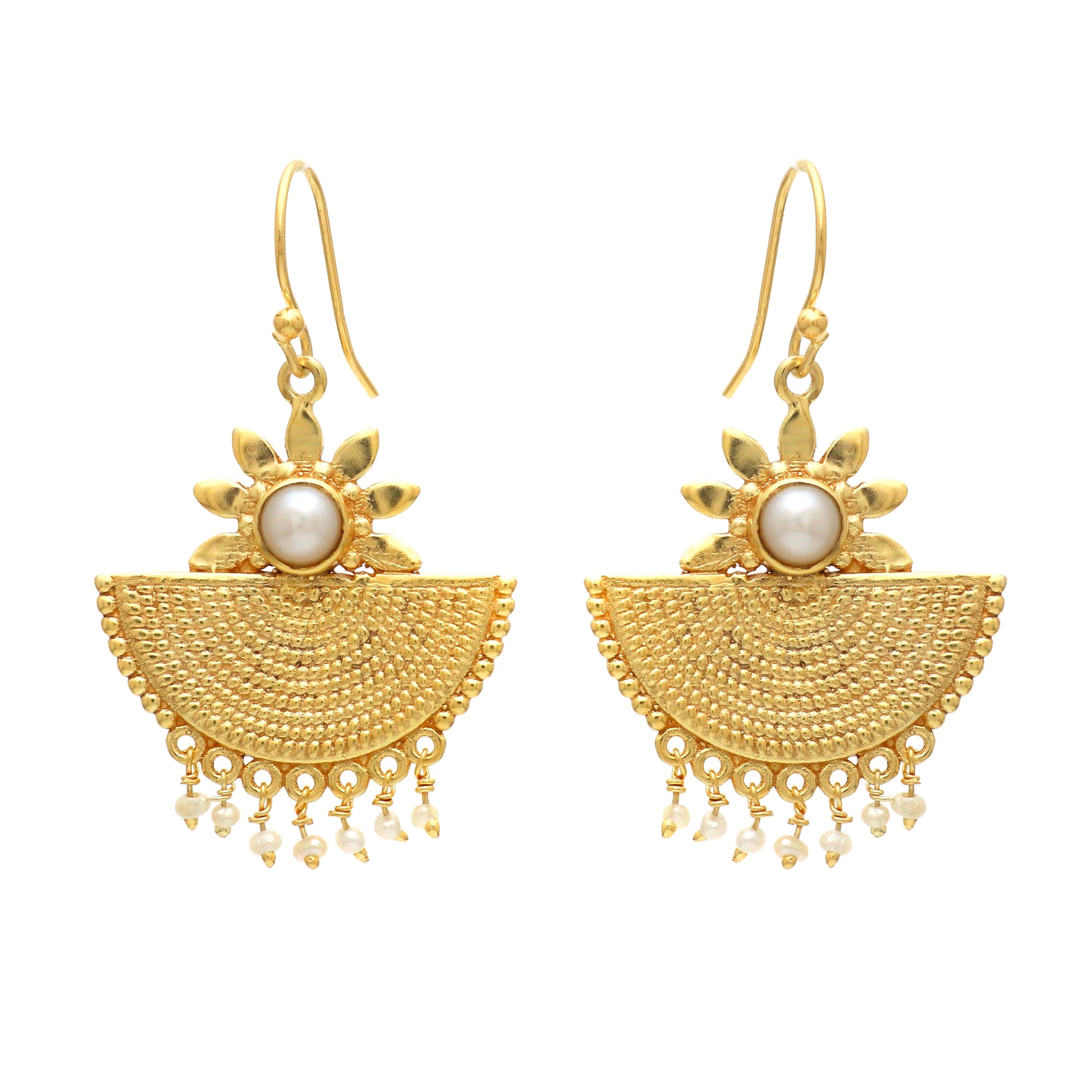 Textured earrings with pearl gemstone in gold plated 925 sterling silver