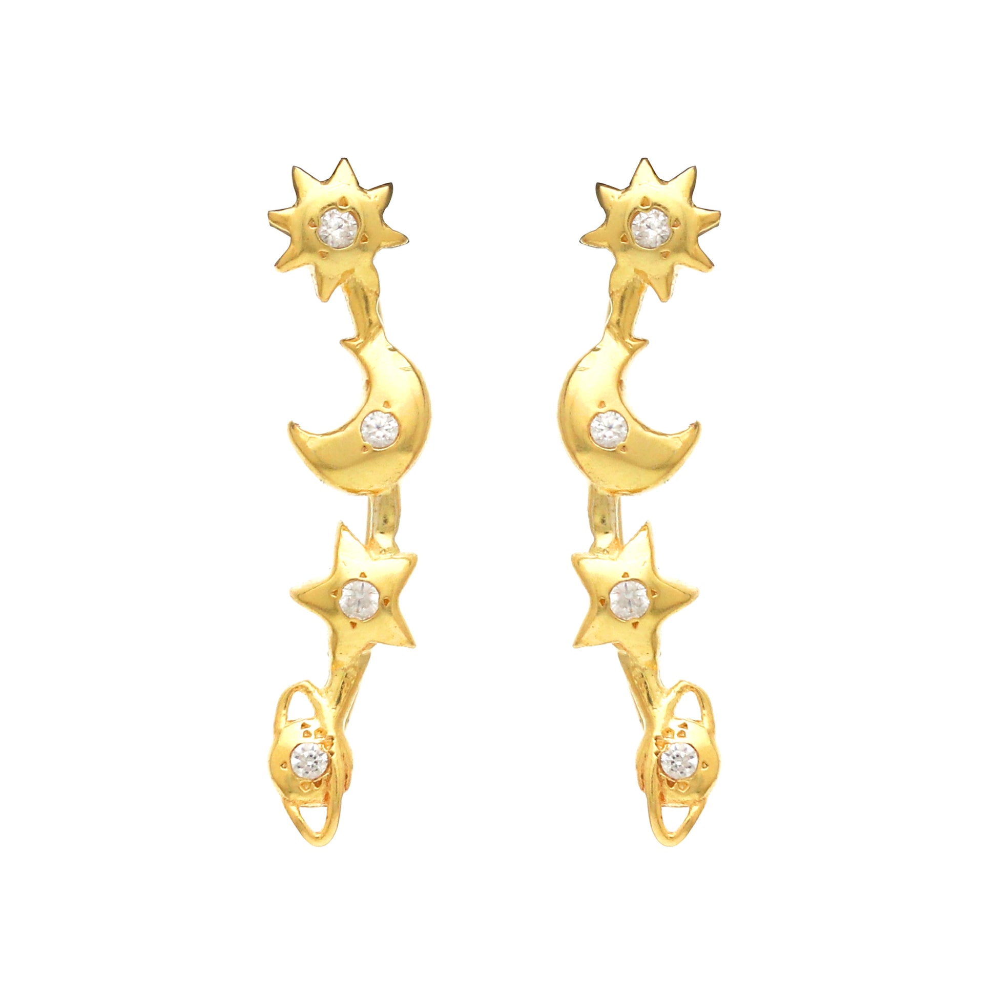 Zircon gemstone four symbol climber earring in 925 gold plated sterling silver