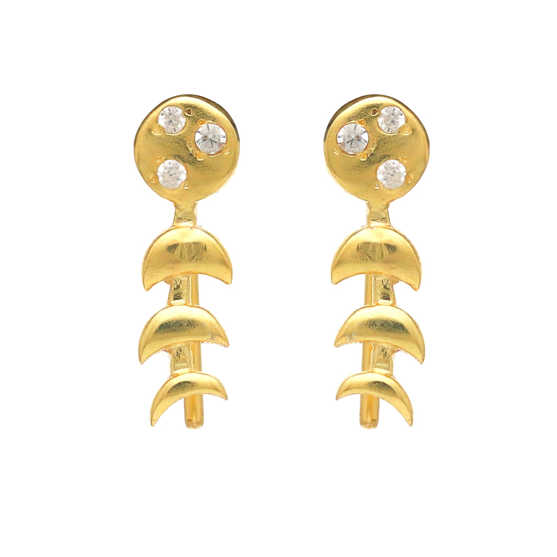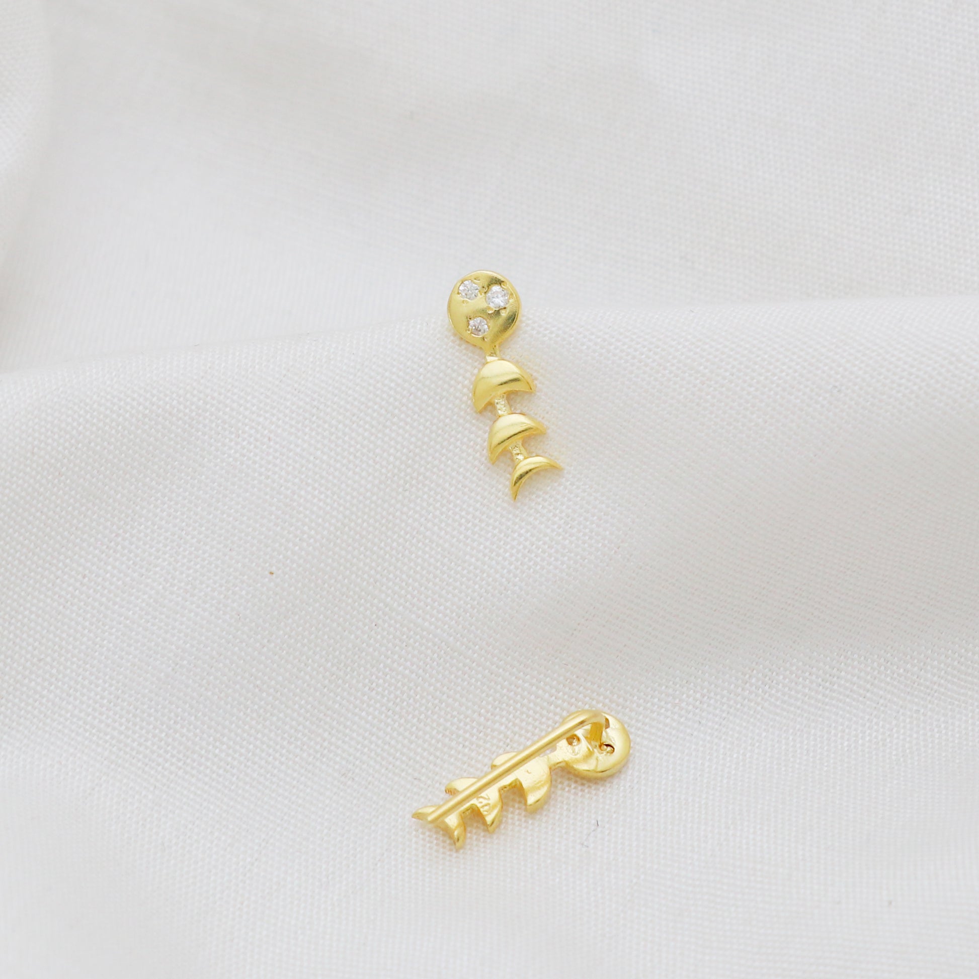 Zircon gemstone moon phase climber earring in 925 gold plated sterling silver